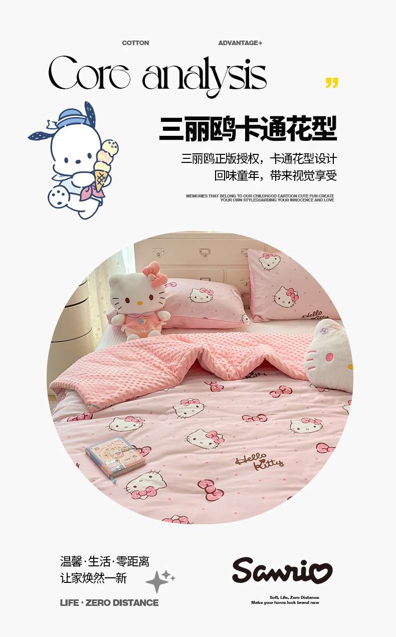 • 91家纺网 家纺一手货源 找家纺 暮思家居 2025新款正版授权三丽鸥A版纯棉B版安抚豆豆绒春秋被冬被豆豆被被子被芯系列 豆豆被-可爱凯蒂