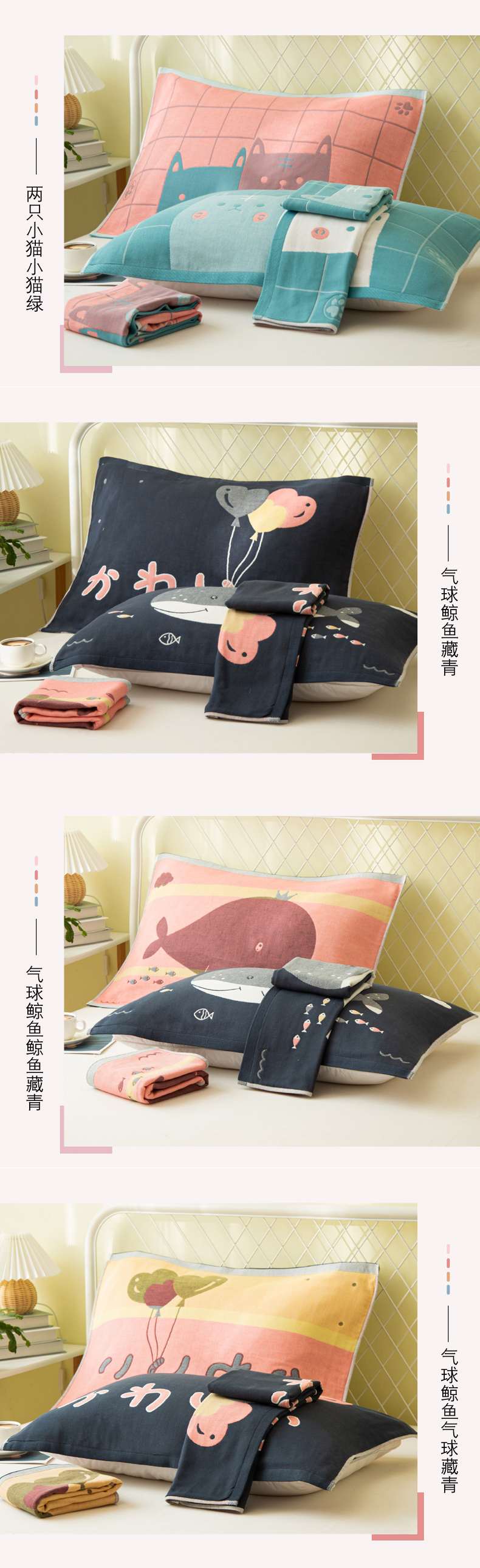 (总)朴尔家纺-毛巾被 2026新款全棉色织提花宽边定位四层纱布枕巾,彩色爱-藏青,彩色爱-粉,春色满园-绿,春意浓-藏青,春意浓-蓝,格子熊-粉,梅花朵朵-藏青,梅花朵朵-粉,阳光风车-绿,一路繁花-黄