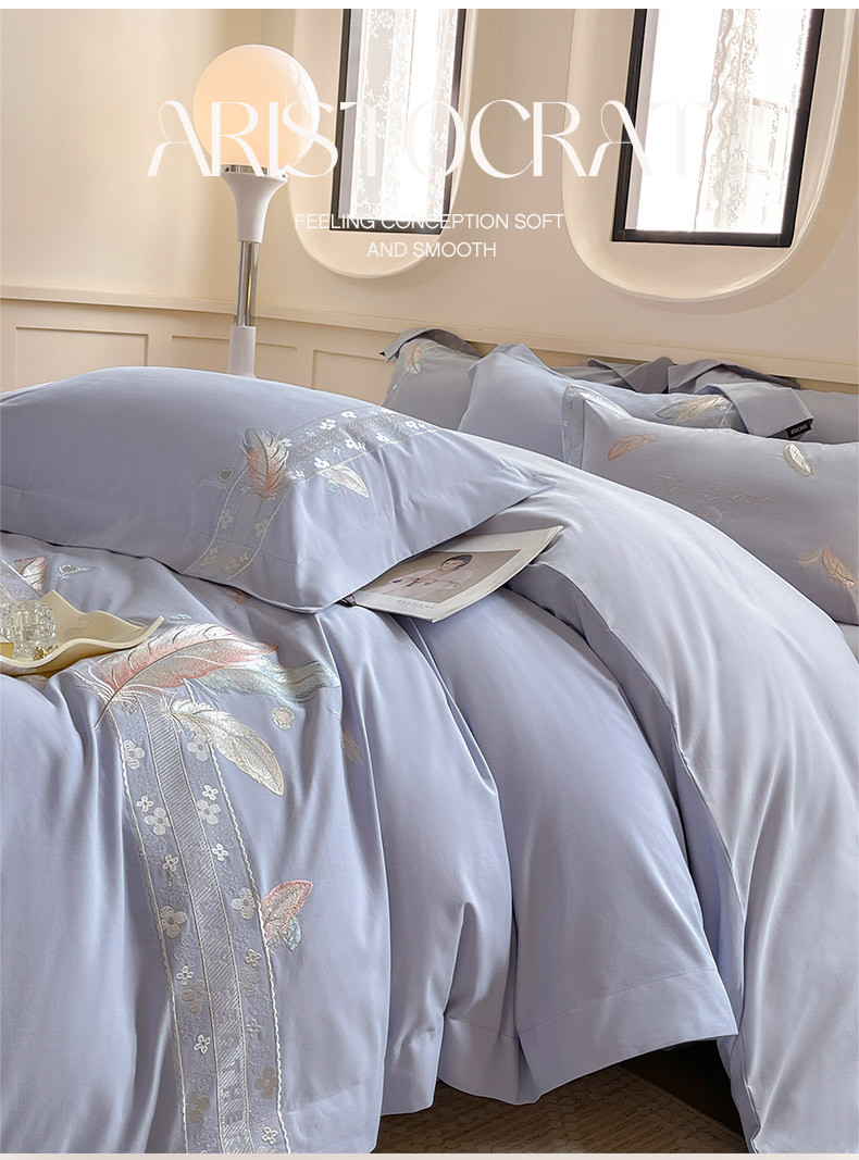 2025秋冬新品A类加厚保暖全棉磨毛四件套纯棉被套重工刺绣轻奢床笠款直播热款床上用品 缦禾-黛紫