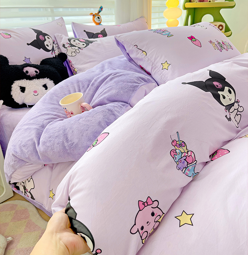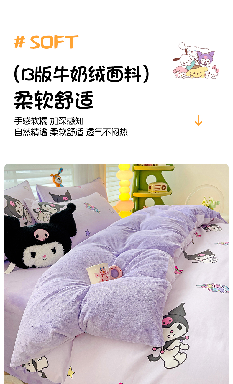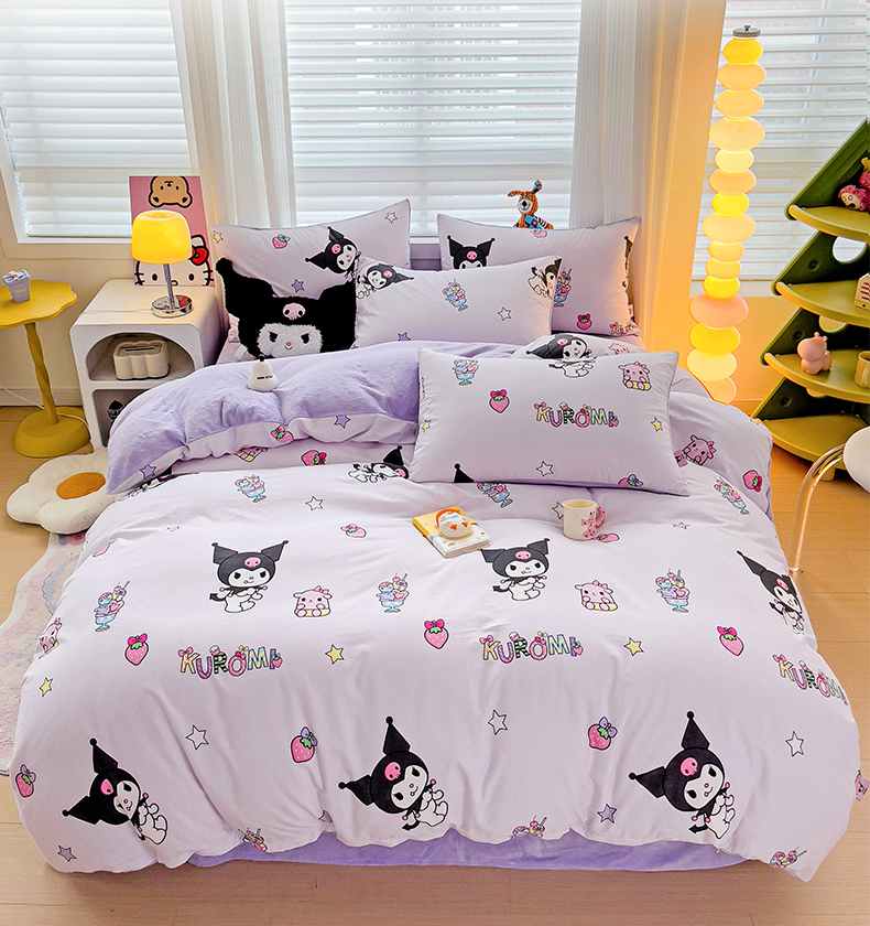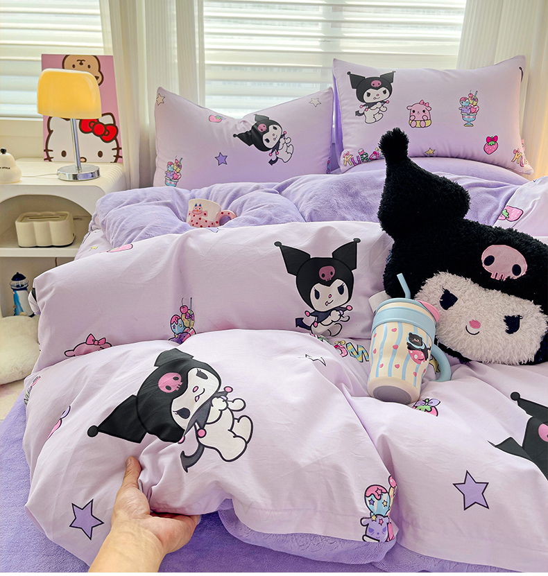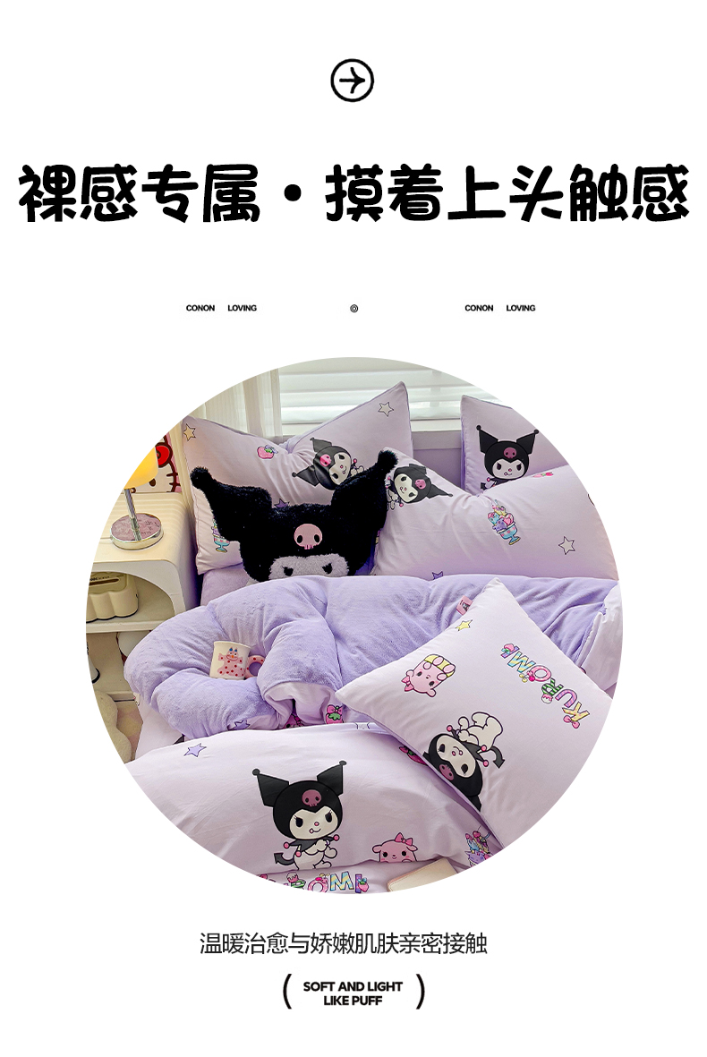朵希曼 2026新款棉绒卡通三丽鸥棉加绒印花系列四件套 贪吃库洛米