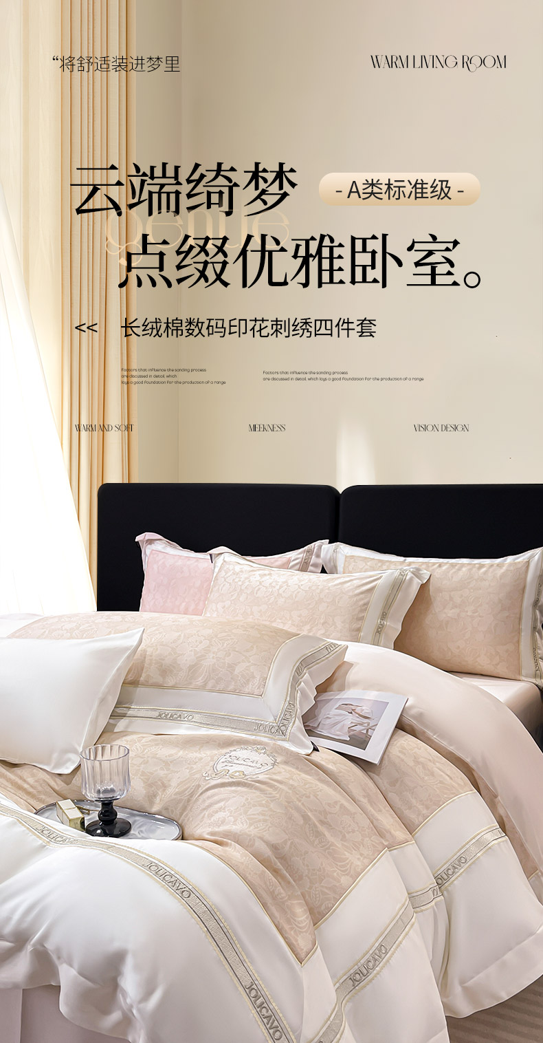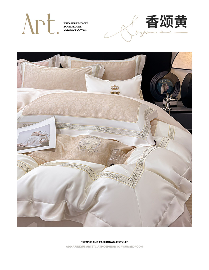 当前位置: 91家纺网 > 商品网购 > 床品套件 > 四件套 > 长绒棉四件套 > 直播爆款A类数码印花长绒棉四件套纯棉全棉拼接被套重工刺绣被套工艺款床上用品 梦莉娅-香颂黄