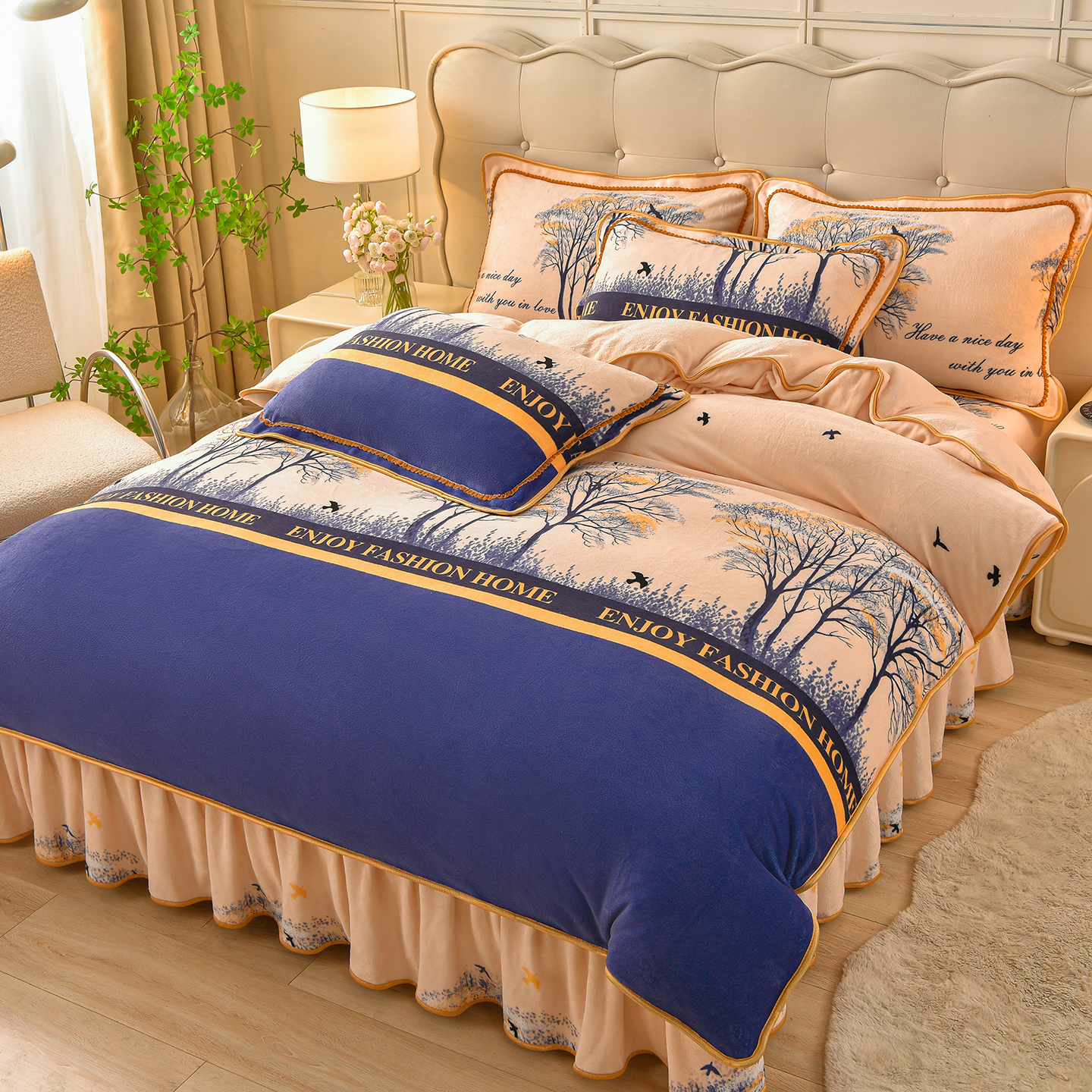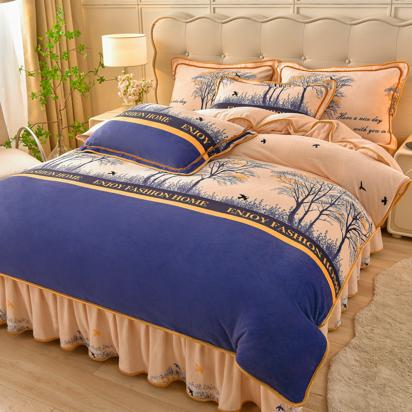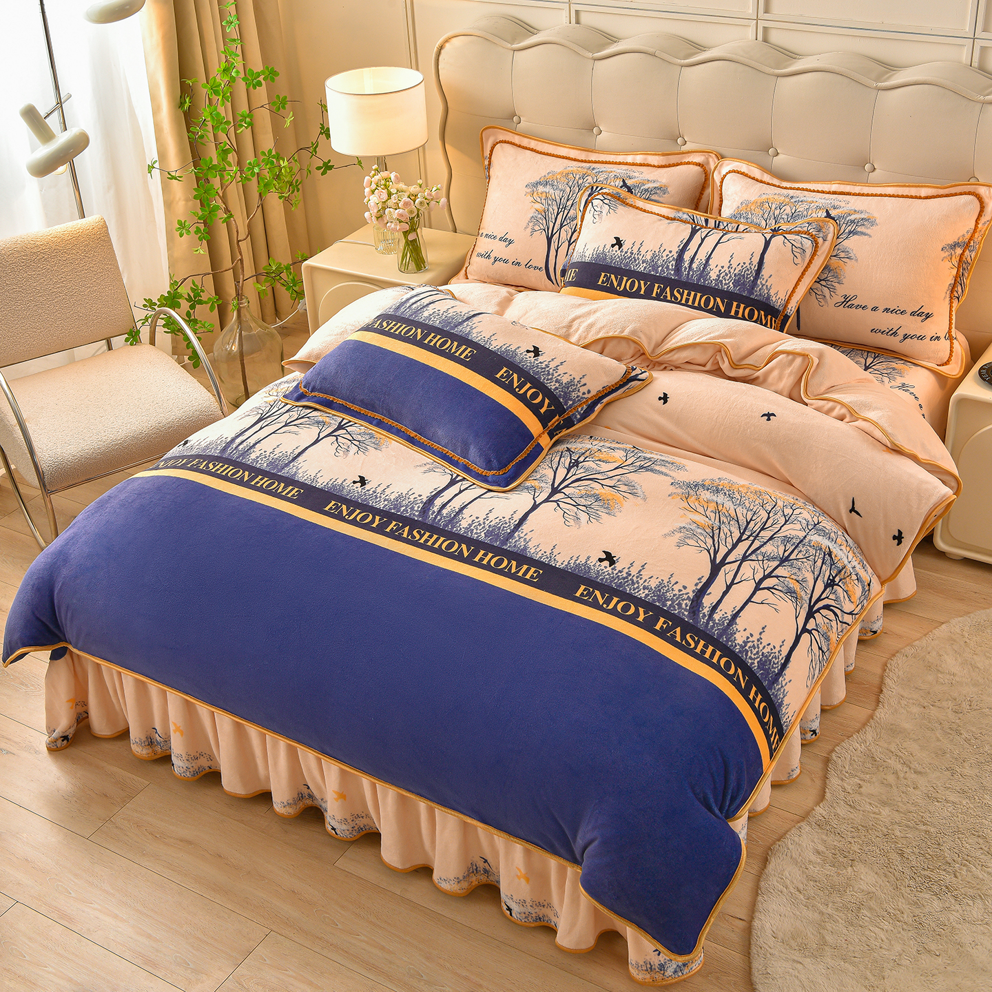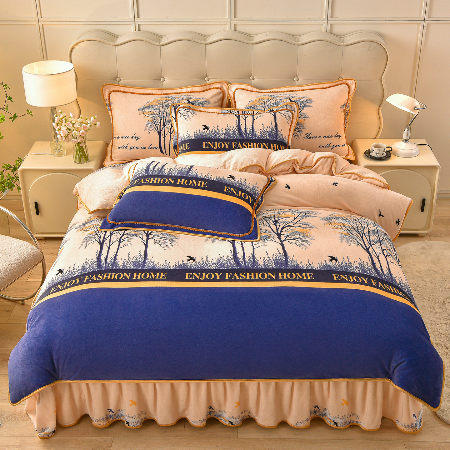赛丽雅 2025新款牛奶绒床裙四件套8-9斤法莱绒直播爆款日产2万套 富贵树-蓝