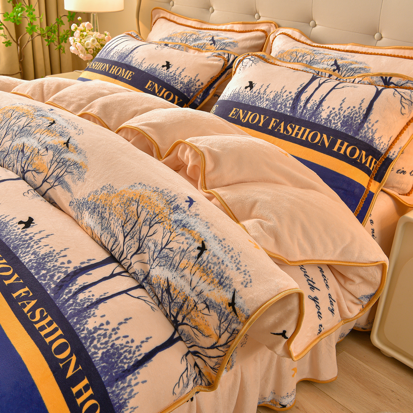 赛丽雅 2025新款牛奶绒床裙四件套8-9斤法莱绒直播爆款日产2万套 晚棠,晚棠