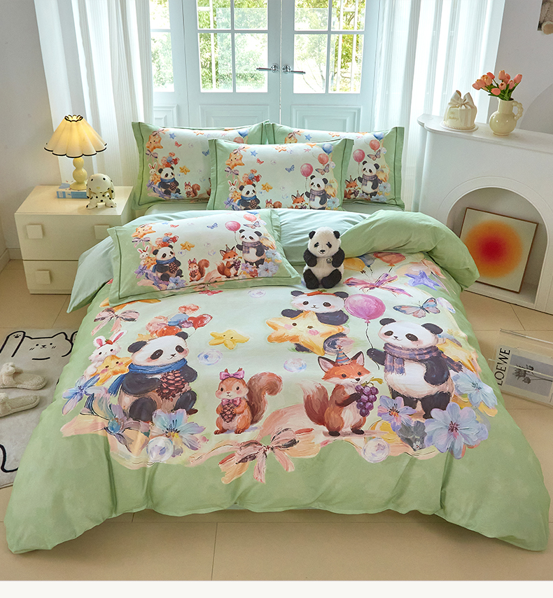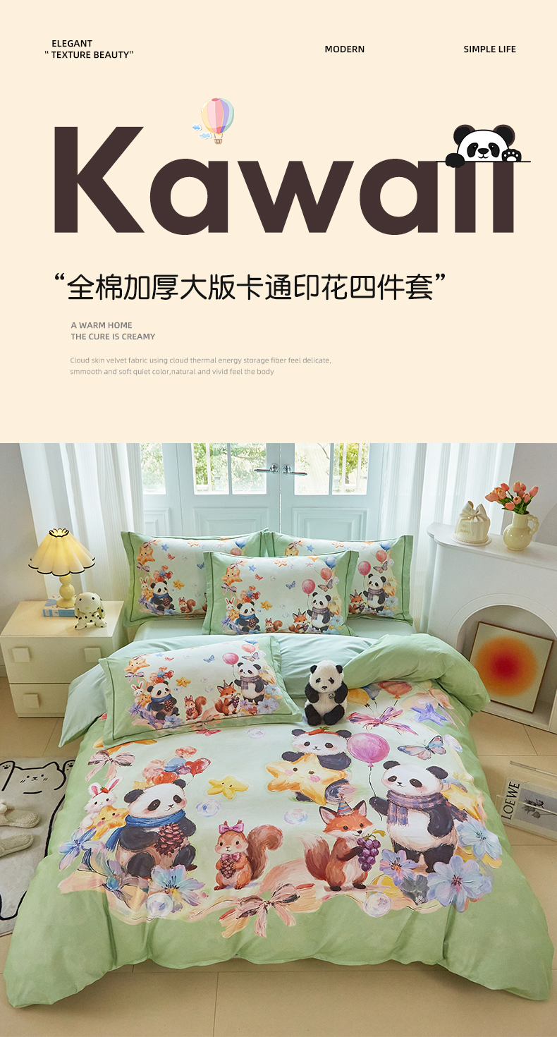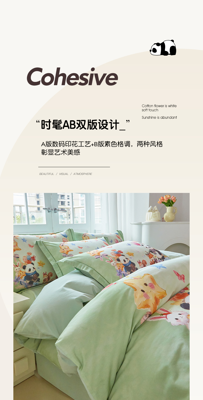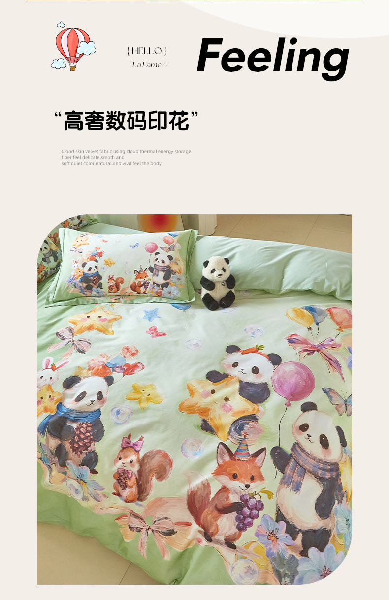 商品名称:格里芬家纺 2025新款全棉纯棉加厚油画风大版卡通印花四件套 (控价标准不低于238元) 墨宝妞妞-绿