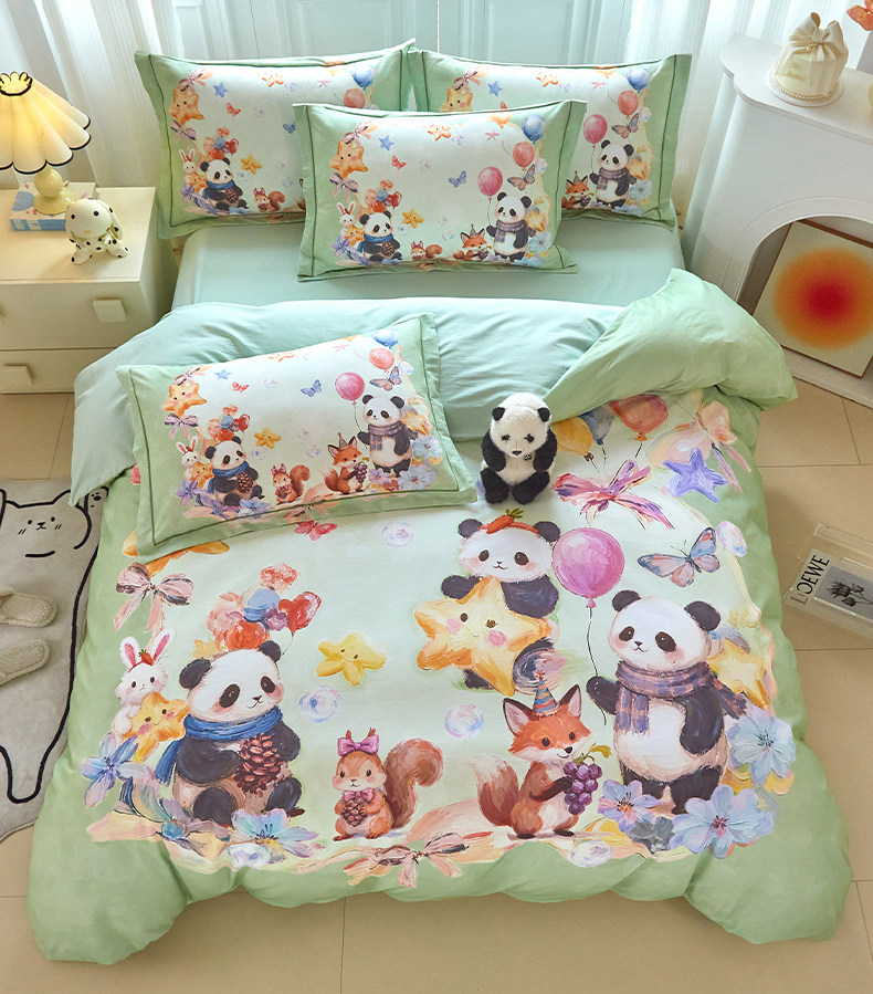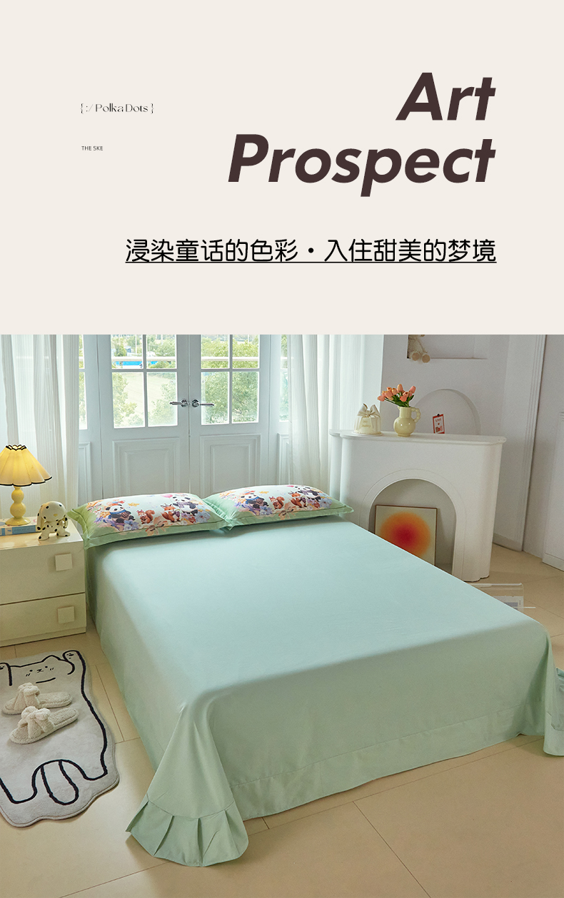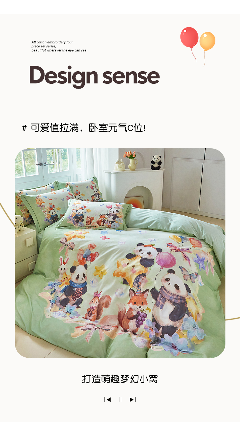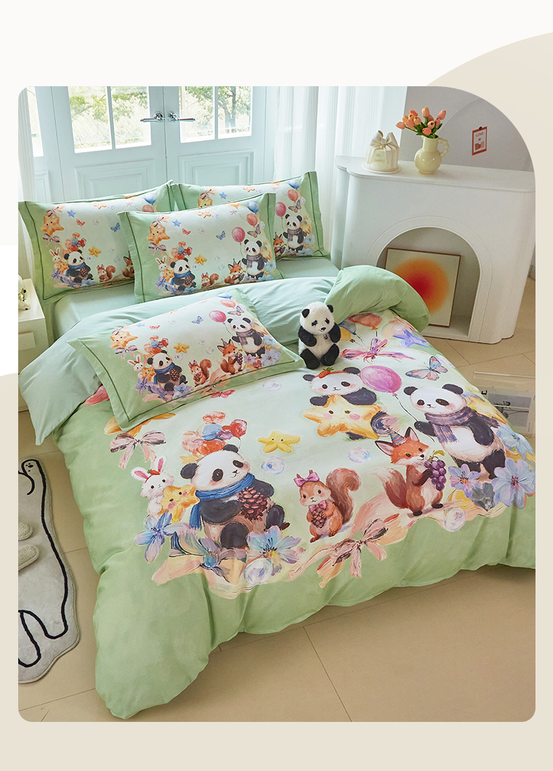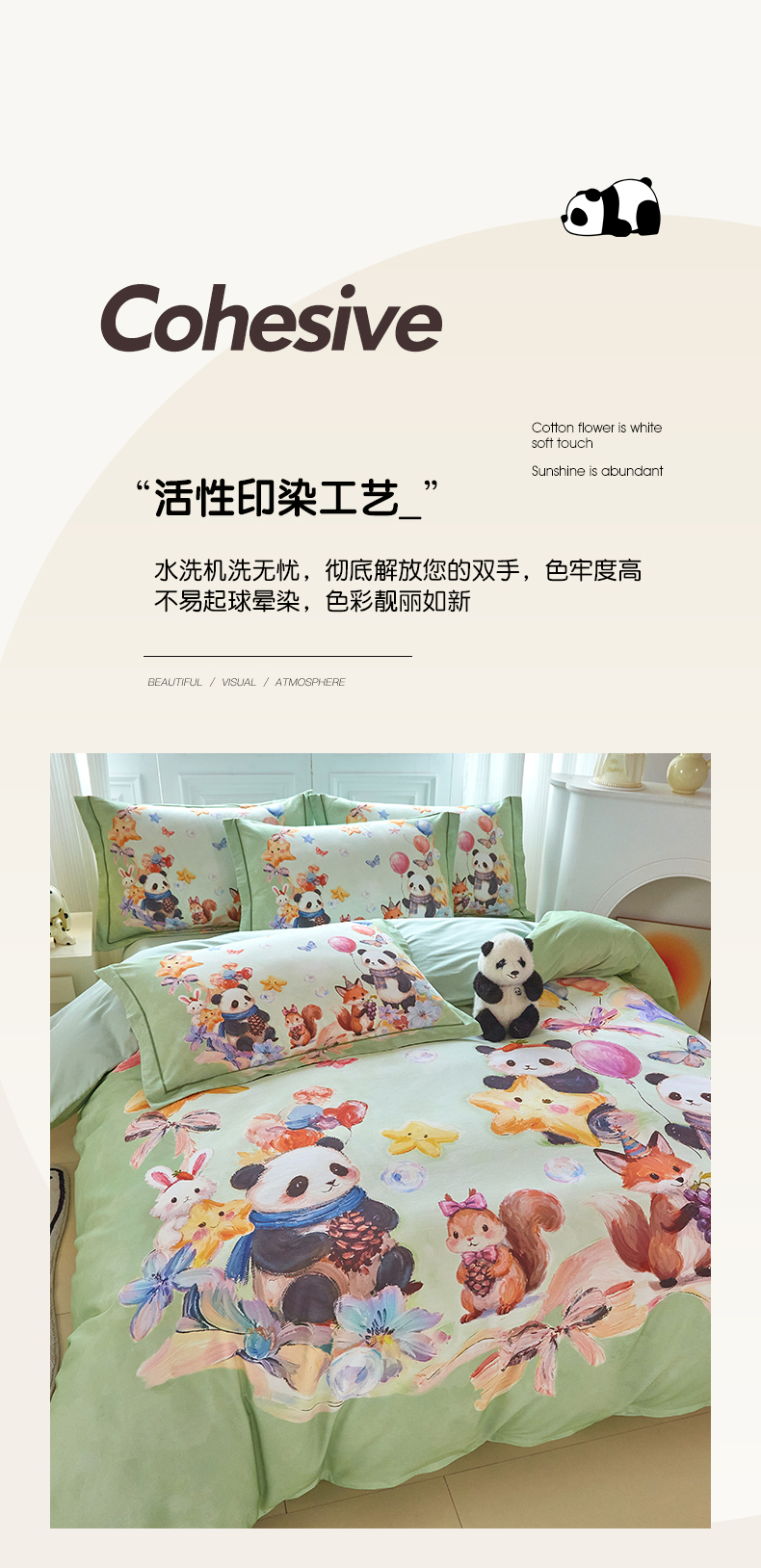 商品名称:格里芬家纺 2025新款全棉纯棉加厚油画风大版卡通印花四件套 (控价标准不低于238元) 墨宝妞妞-绿