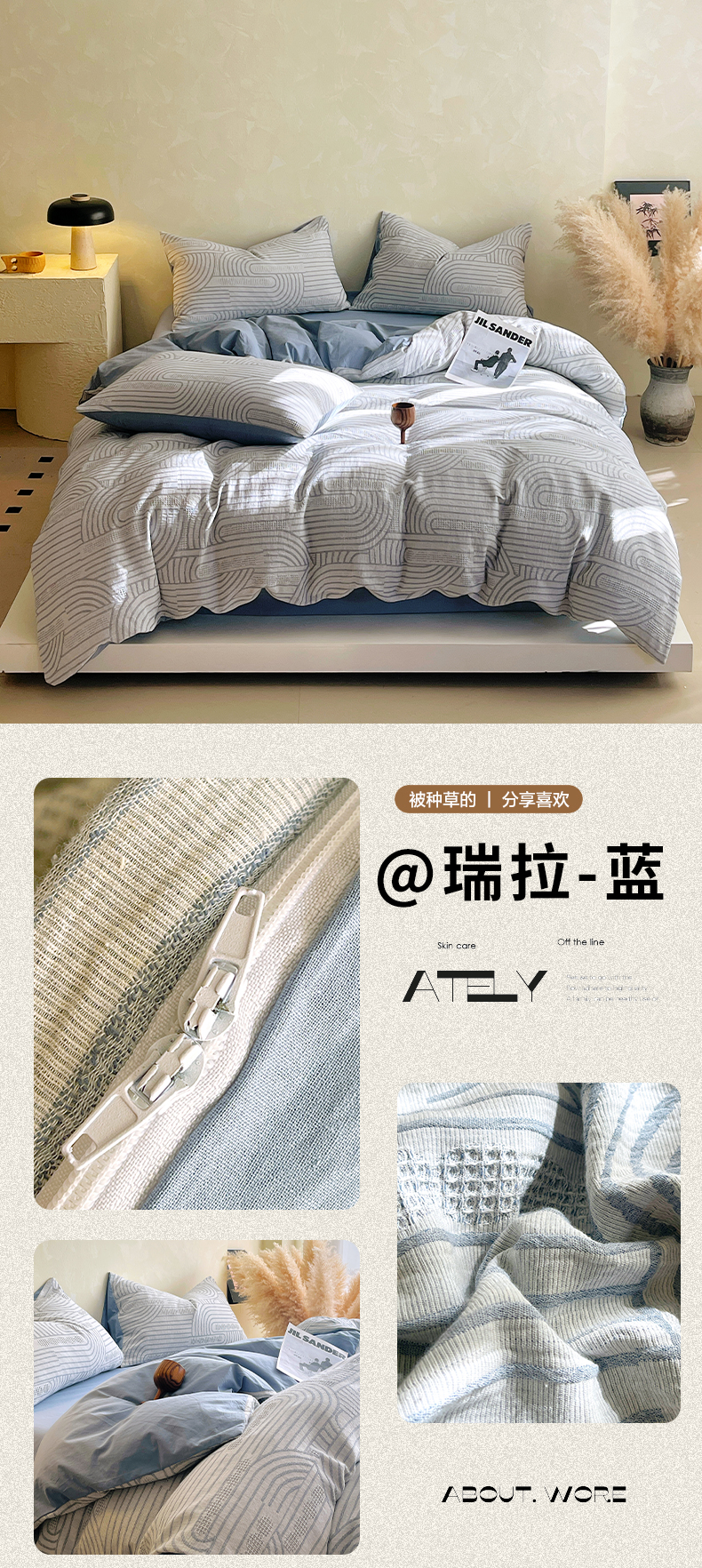 商品名称:春皖家纺 2026新款A类全棉三层纱AB版简约四件套-风格二 森屿
