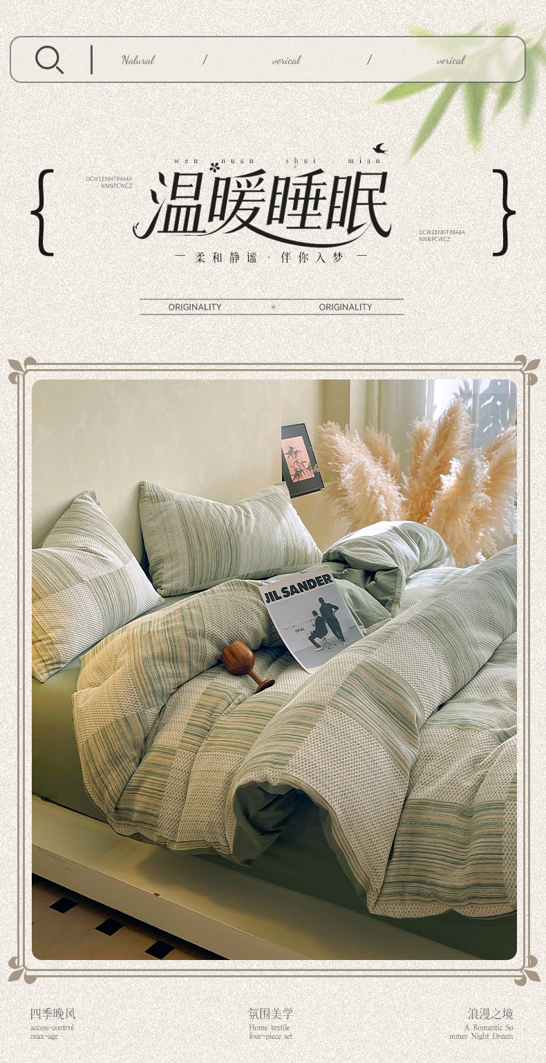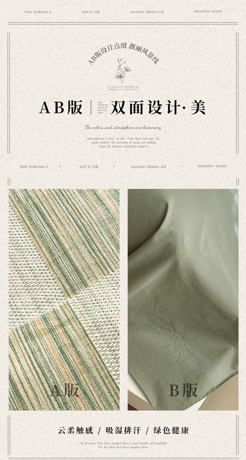 春皖家纺 2026新款A类全棉三层纱AB版简约四件套-风格二 森屿