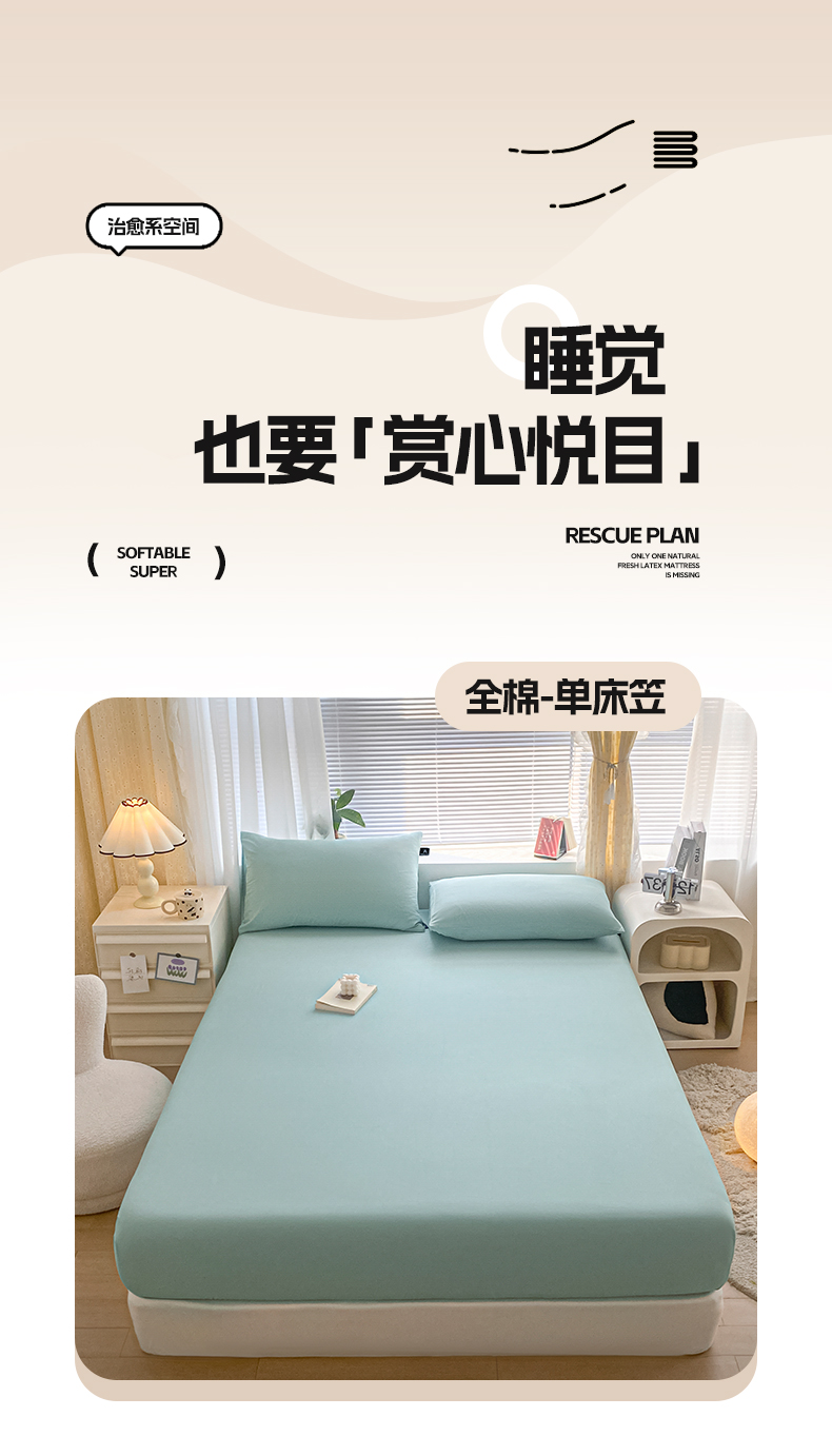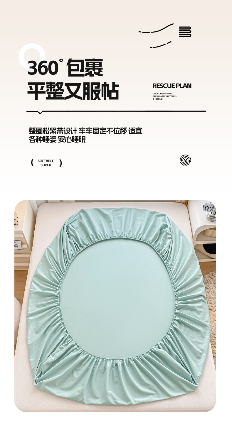 涵宸家纺 2026新款全棉纯色单床笠-米兰 床笠-幸运兰