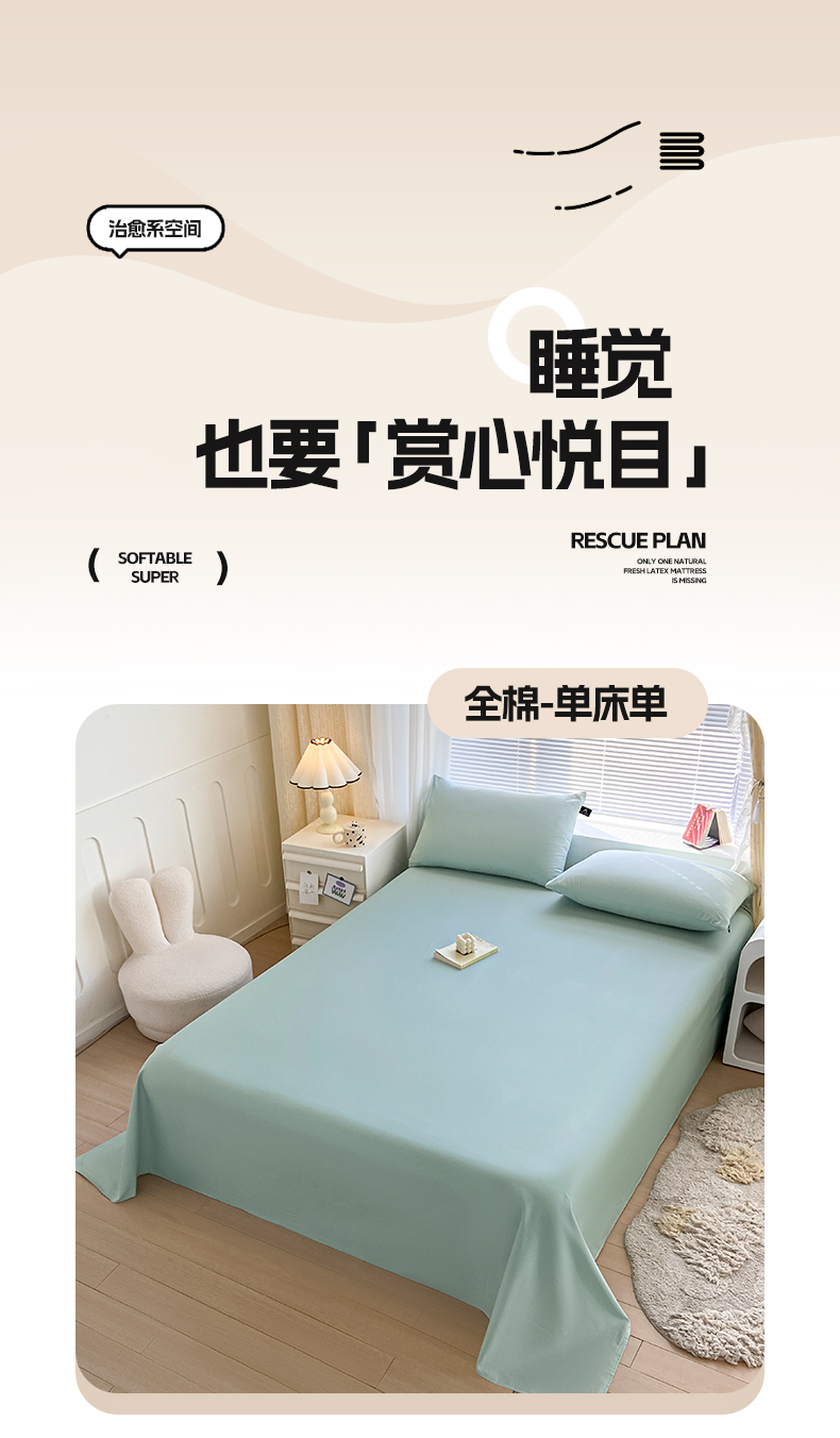 涵宸家纺 2026新款全棉纯色单床单-米兰 床单-幸运兰