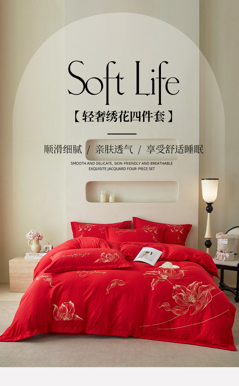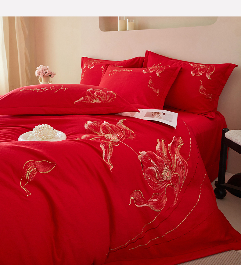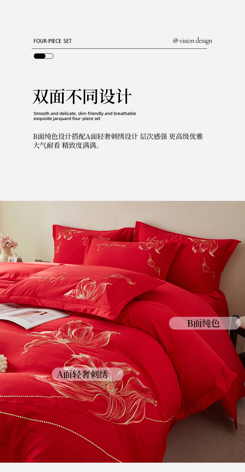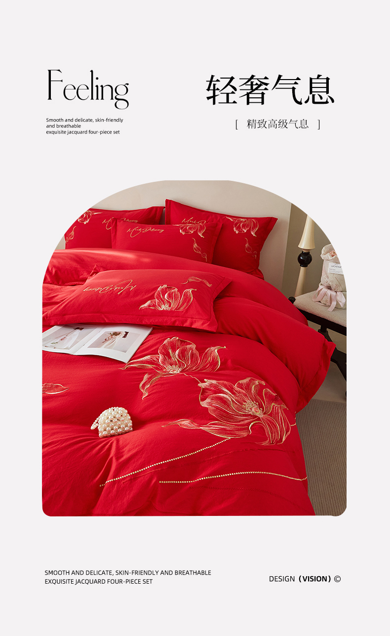 金纱玉纺家纺 2026新款轻奢工艺绣花四件套(提供买家秀) 绚丽-大红