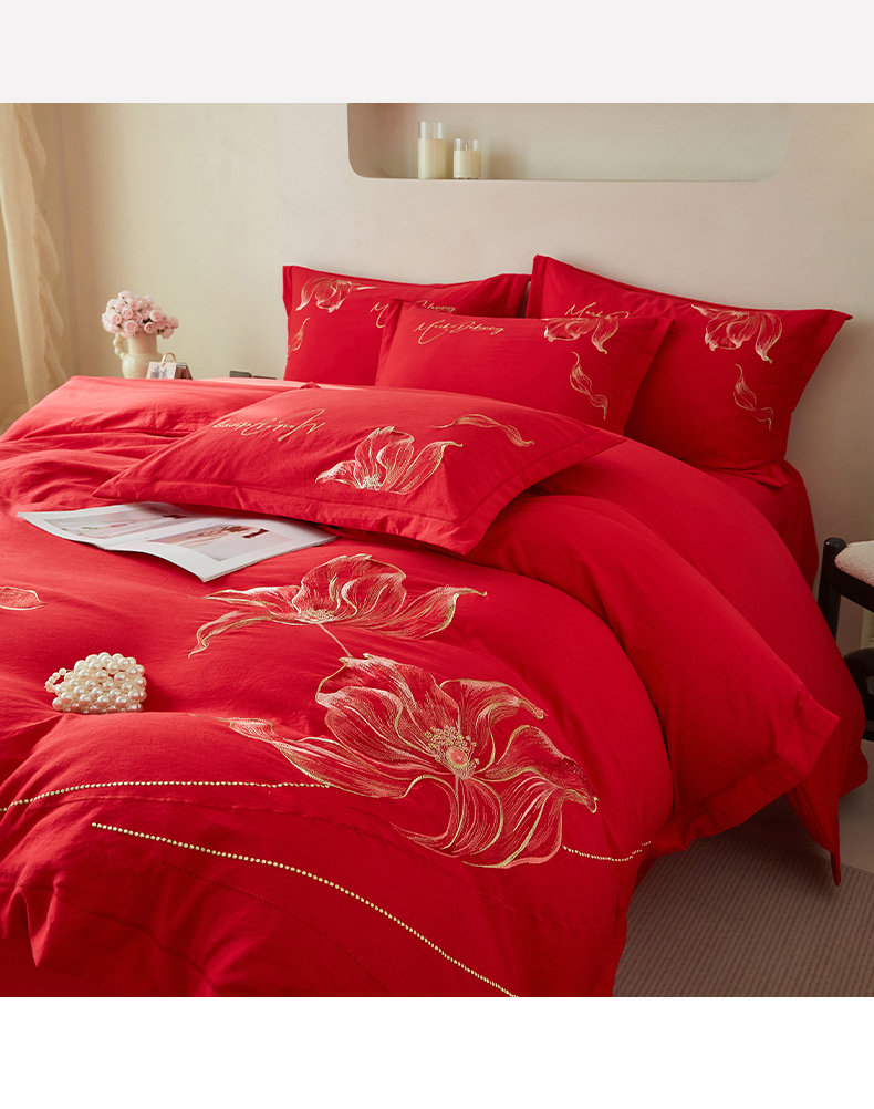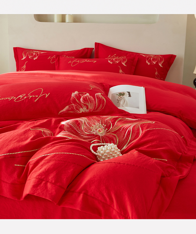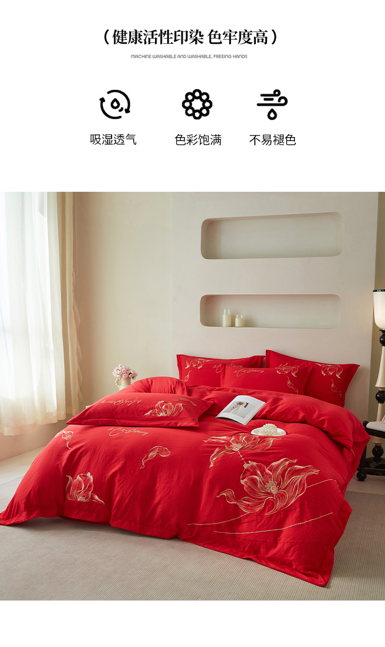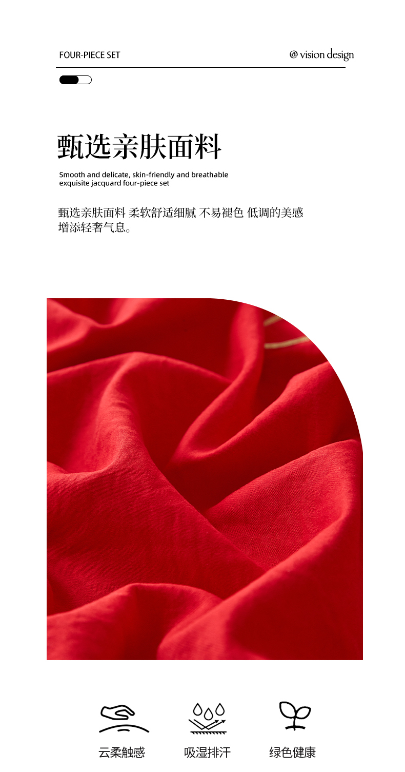 金纱玉纺家纺 2026新款轻奢工艺绣花四件套(提供买家秀) 绚丽-大红