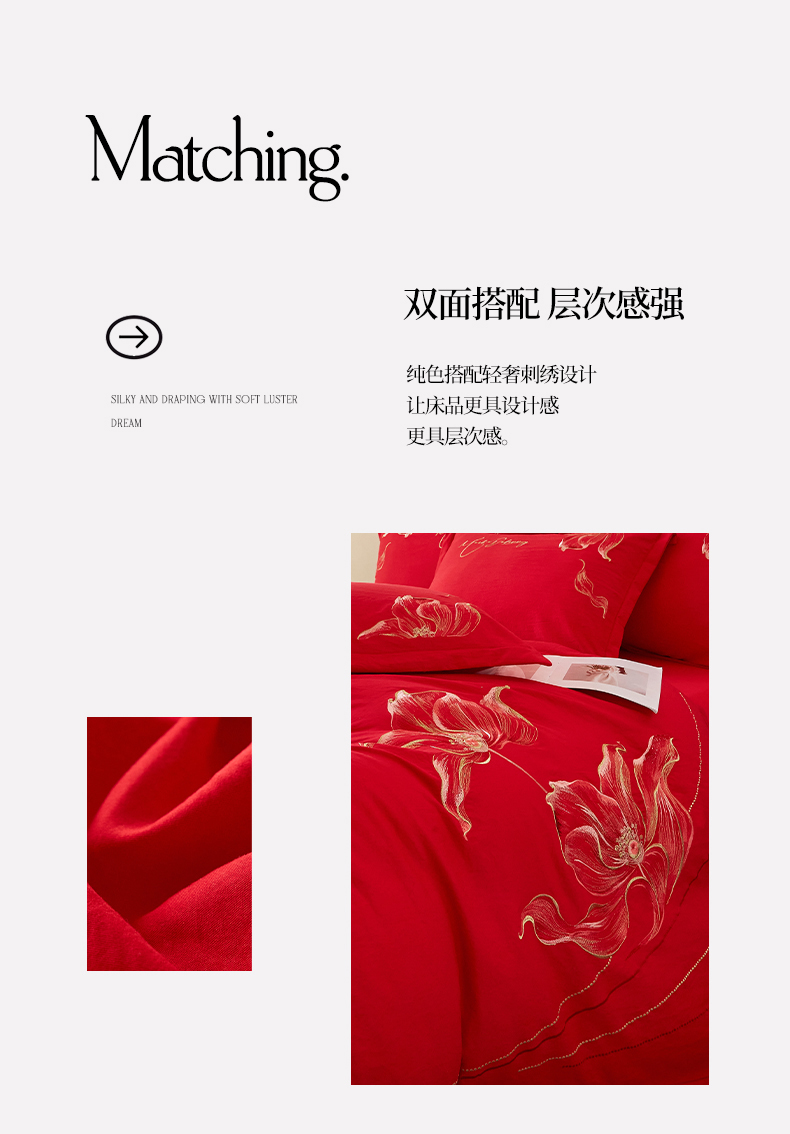 商品名称:金纱玉纺家纺 2026新款轻奢工艺绣花四件套(提供买家秀) 绚丽-大红