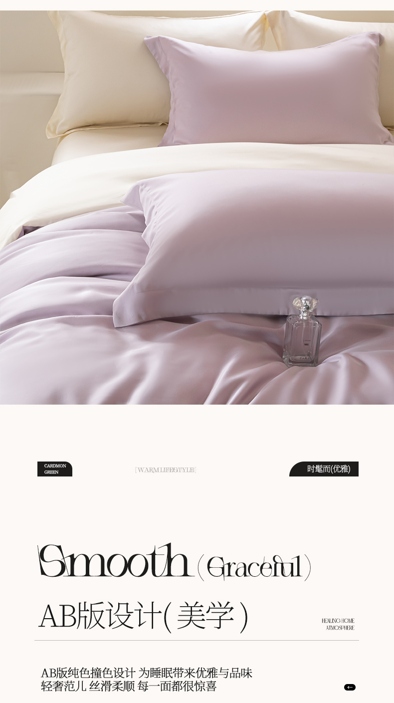 当前位置: 91家纺网 > 商品网购 > 床品套件 > 四件套 > 其它四件套 > 涵宸家纺 2026新款纯色天丝棉四件套-场景二 紫语+象牙白