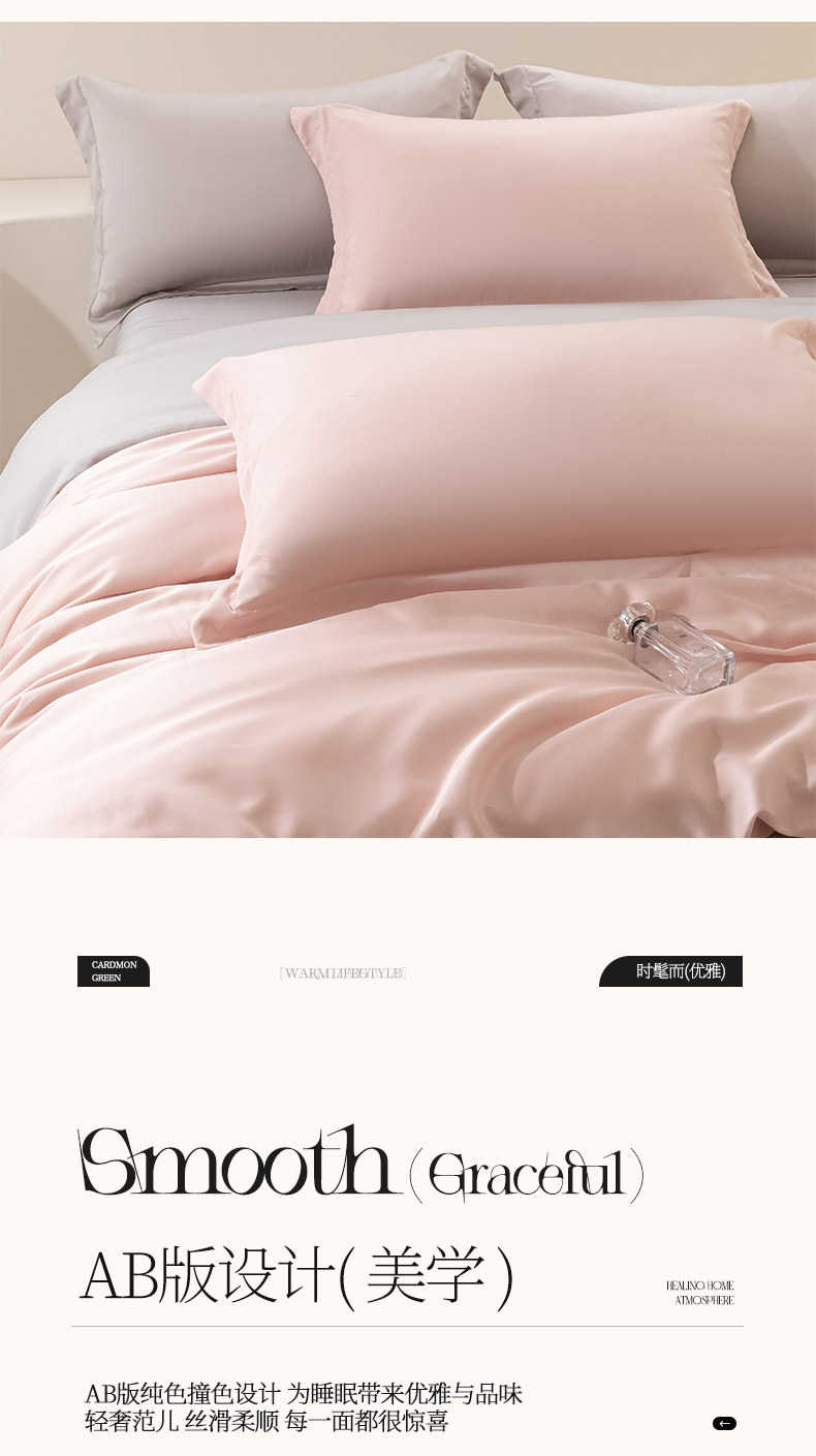 涵宸家纺 2026新款纯色天丝棉四件套-场景二 玫瑰粉+时尚灰