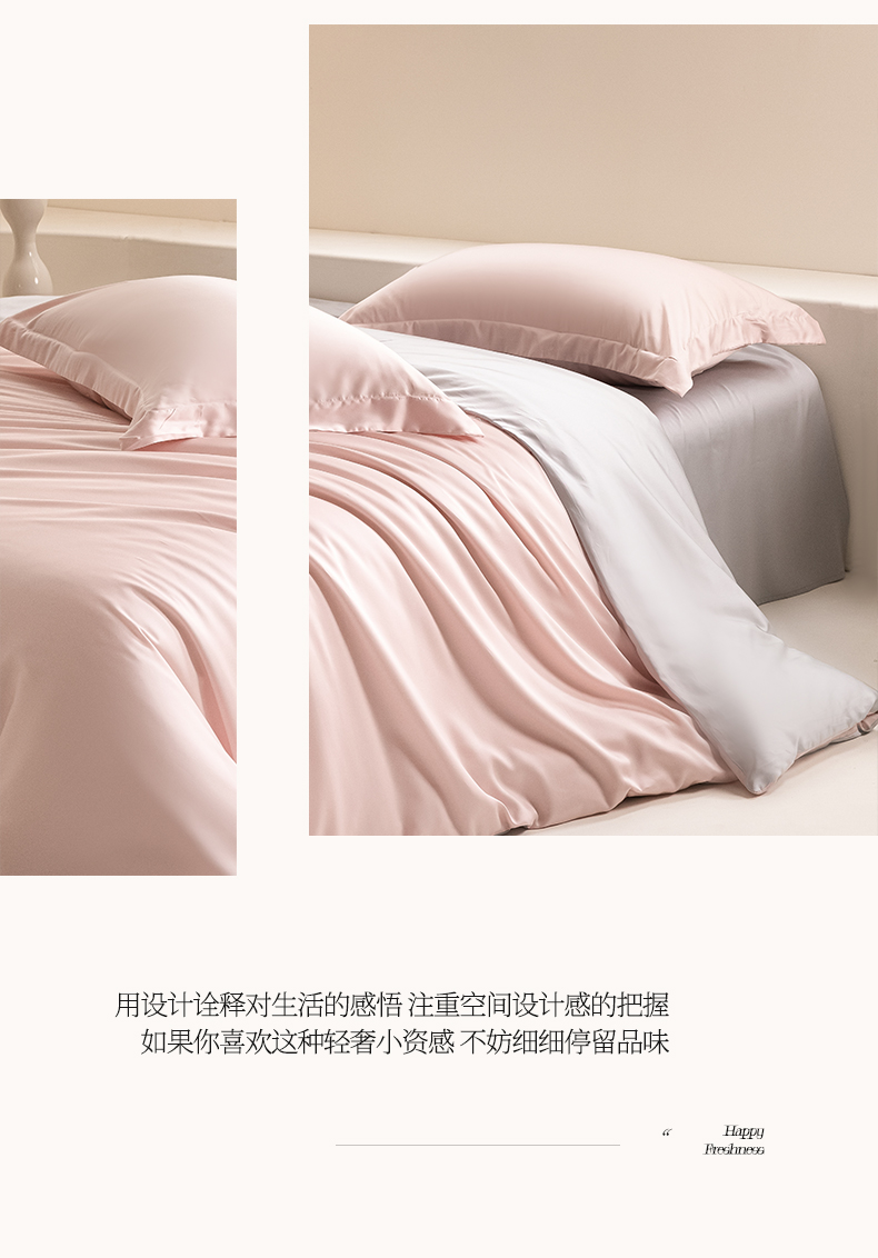 当前位置: 91家纺网 > 商品网购 > 床上用品 > 床单 > 涵宸家纺 2026新款纯色天丝棉四件套-场景二 玫瑰粉+时尚灰