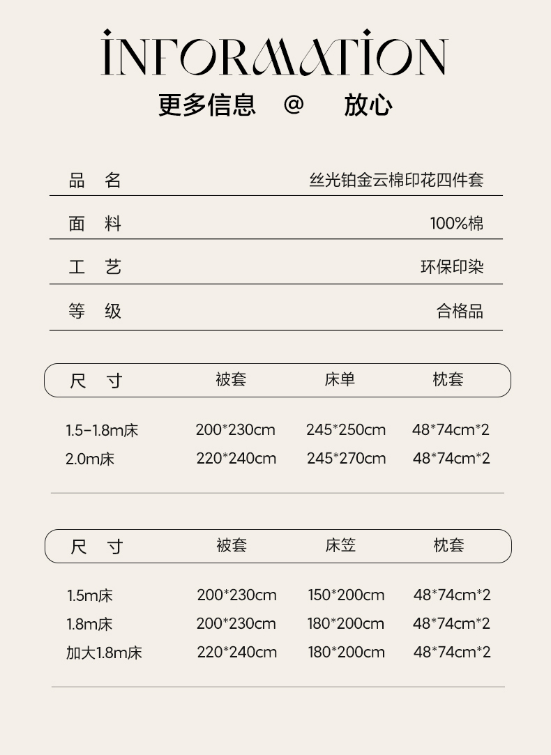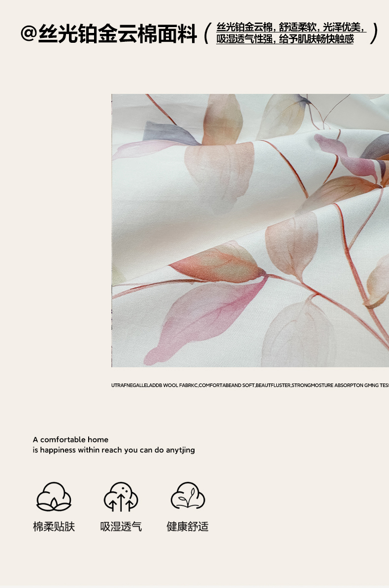 (总)橙艺家居 2026新款丝光铂金云棉印花四件套 本店线上严格控价,券后、活动后标准不得低于218元,以此类推。请各位老爷严格遵守,以免低价后再调整价格,影响链接权重,花朝拾露-紫,花田诗梦-粉,花颜外-粉,蔓月-紫,梦叶集-粉,慕枝下-绿,千叶密语-粉,闻栖-绿,雅莹-绿,叶间绒雪-兰,叶木槿-米,予她-粉,自然低语-绿,芙晚,奈亚,婉情-灰