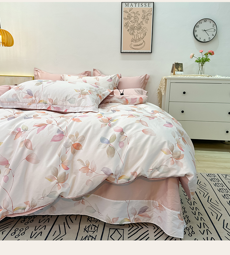橙艺家居 2026新款丝光铂金云棉印花四件套 本店线上严格控价,券后、活动后标准不得低于218元,以此类推。请各位老爷严格遵守,以免低价后再调整价格,影响链接权重 梦叶集-粉
