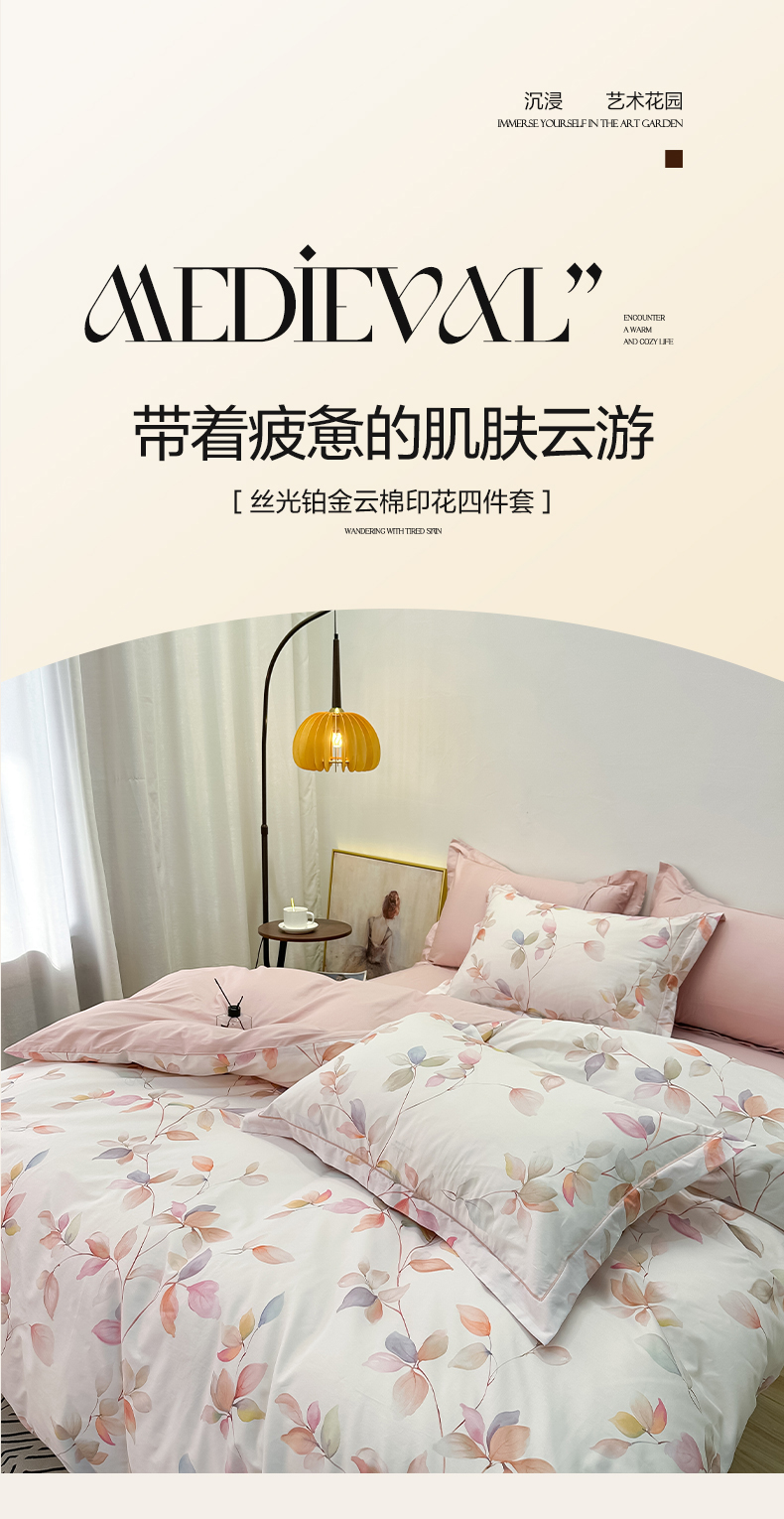 商品名称:橙艺家居 2026新款丝光铂金云棉印花四件套 本店线上严格控价,券后、活动后标准不得低于218元,以此类推。请各位老爷严格遵守,以免低价后再调整价格,影响链接权重 梦叶集-粉