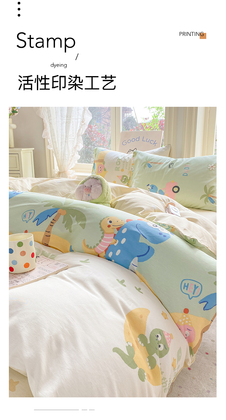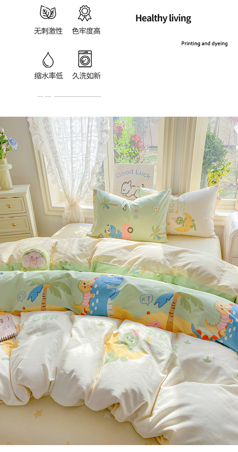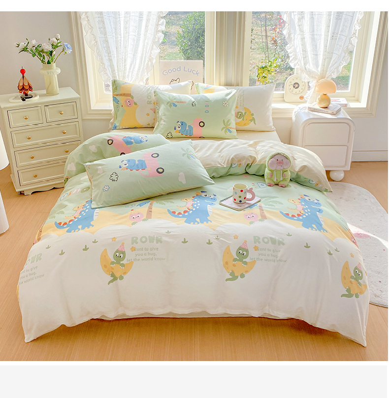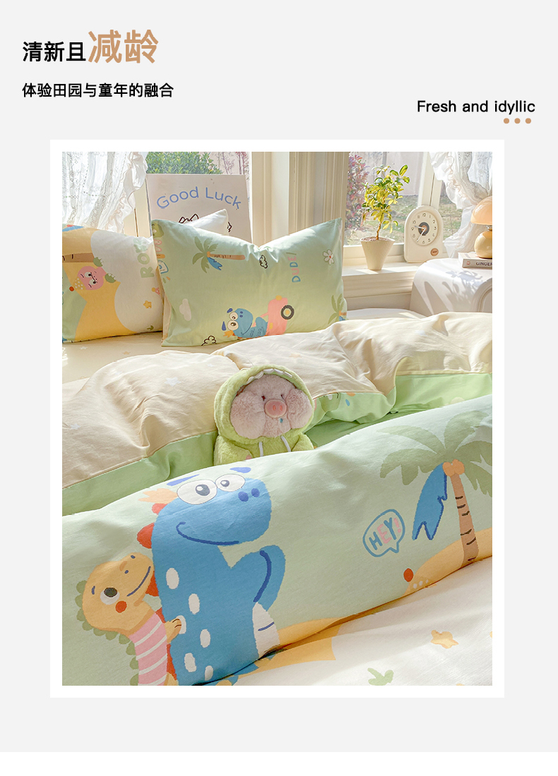 当前位置: 91家纺网 > 商品网购 > 床品套件 > 四件套 > 全棉普通四件套 > 黑马家居 2026新款13070全棉印花小清新卡通花卉四件套系列 恐龙派对
