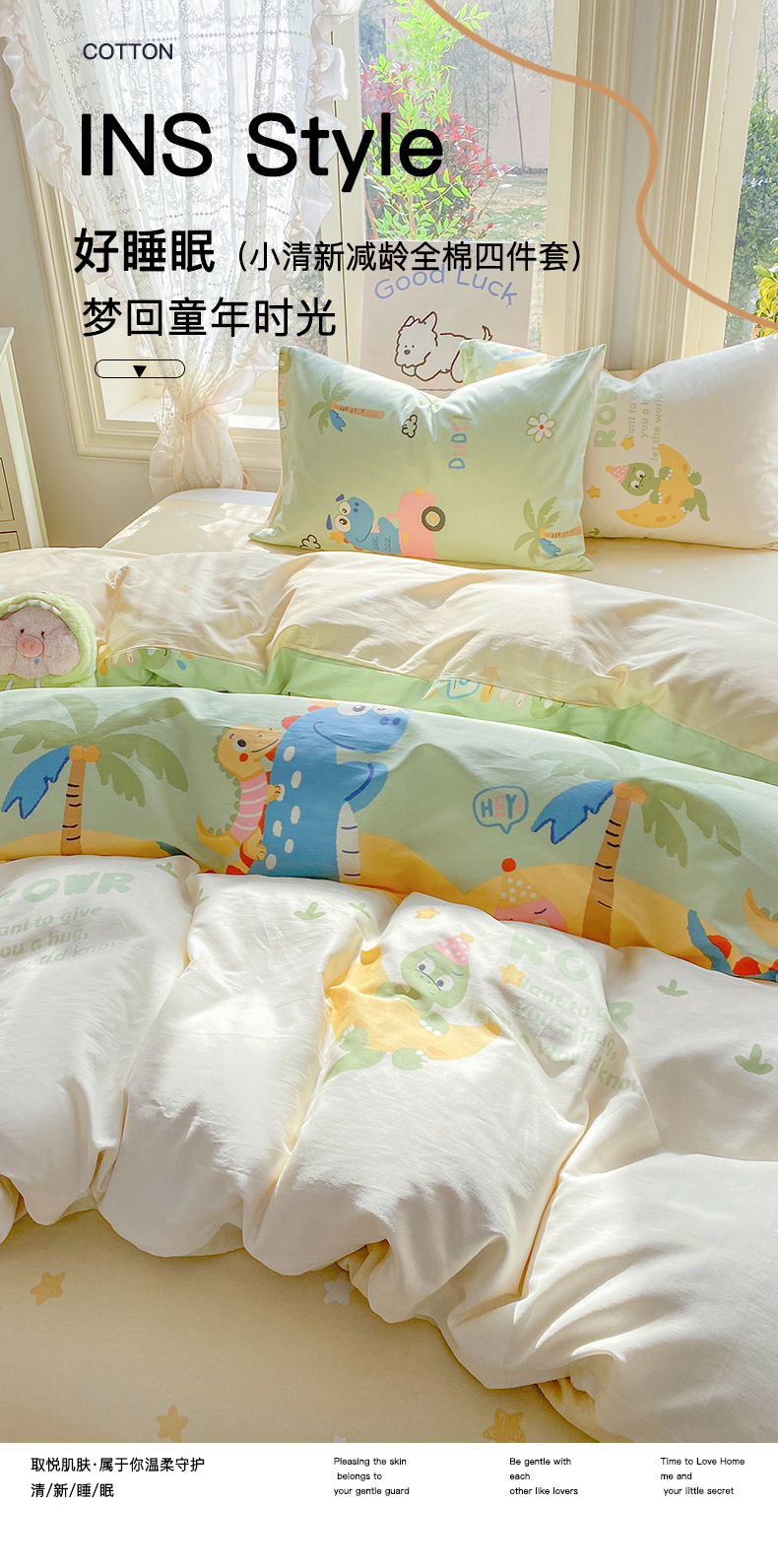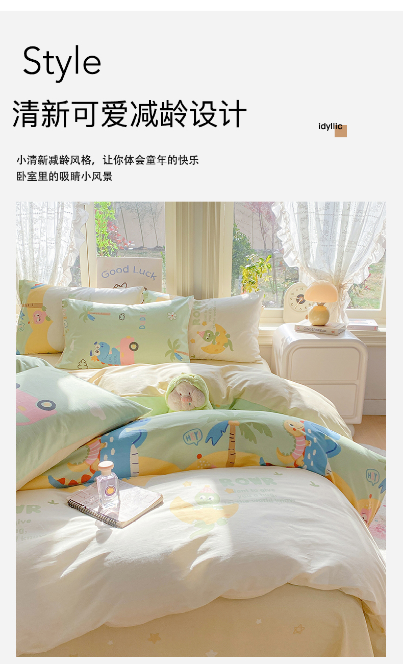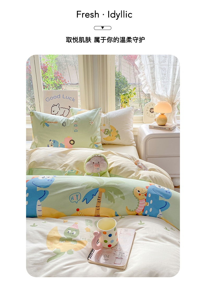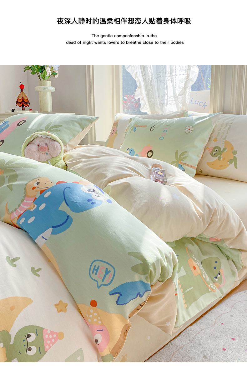 当前位置: 91家纺网 > 商品网购 > 床品套件 > 四件套 > 全棉普通四件套 > 黑马家居 2026新款13070全棉印花小清新卡通花卉四件套系列 恐龙派对