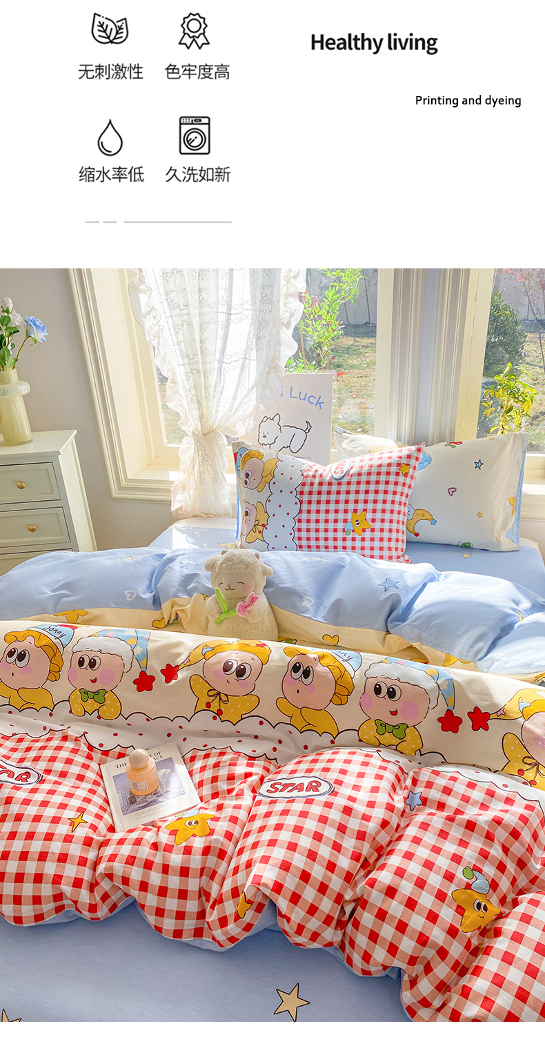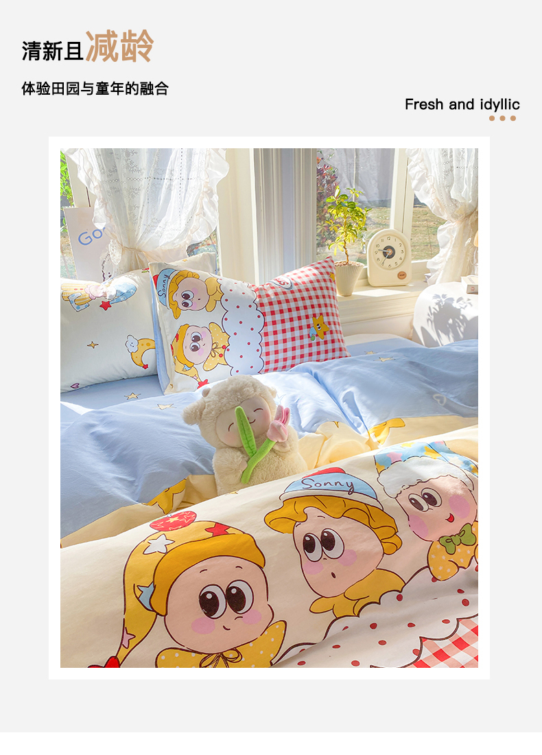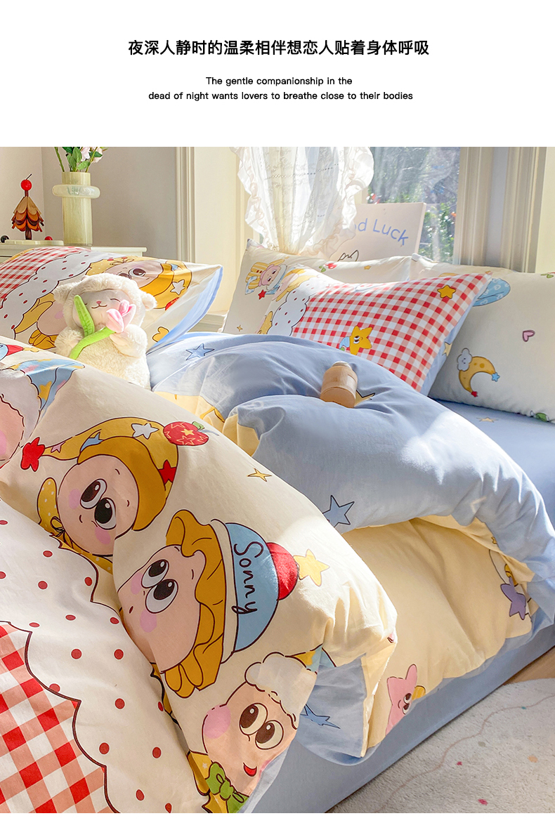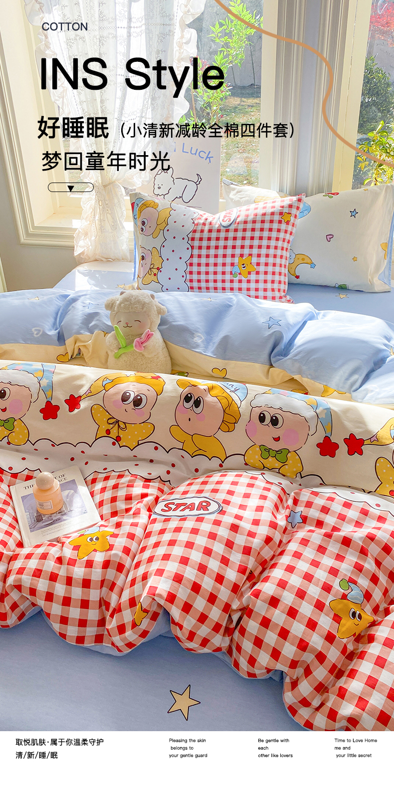 当前位置: 91家纺网 > 商品网购 > 床品套件 > 四件套 > 全棉普通四件套 > 黑马家居 2026新款13070全棉印花小清新卡通花卉四件套系列 晚安星星人