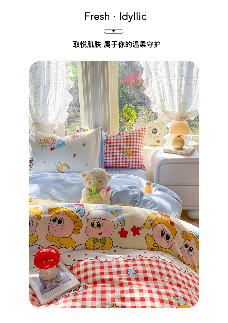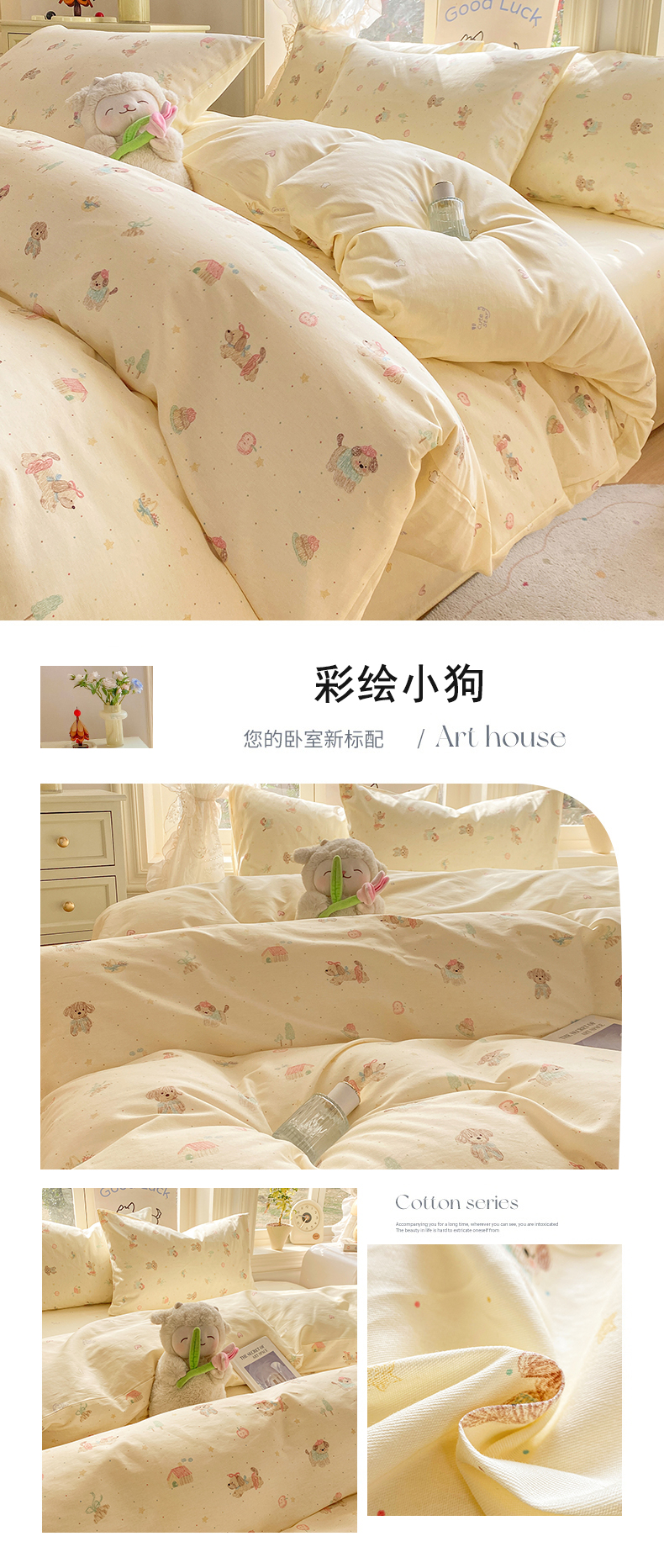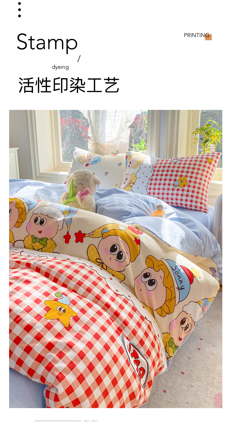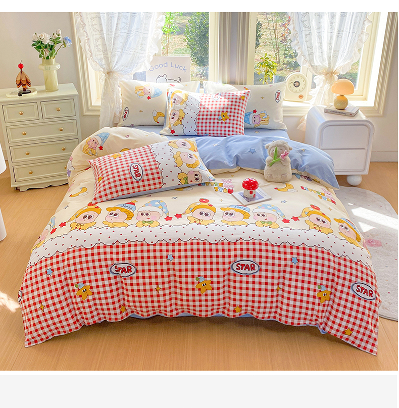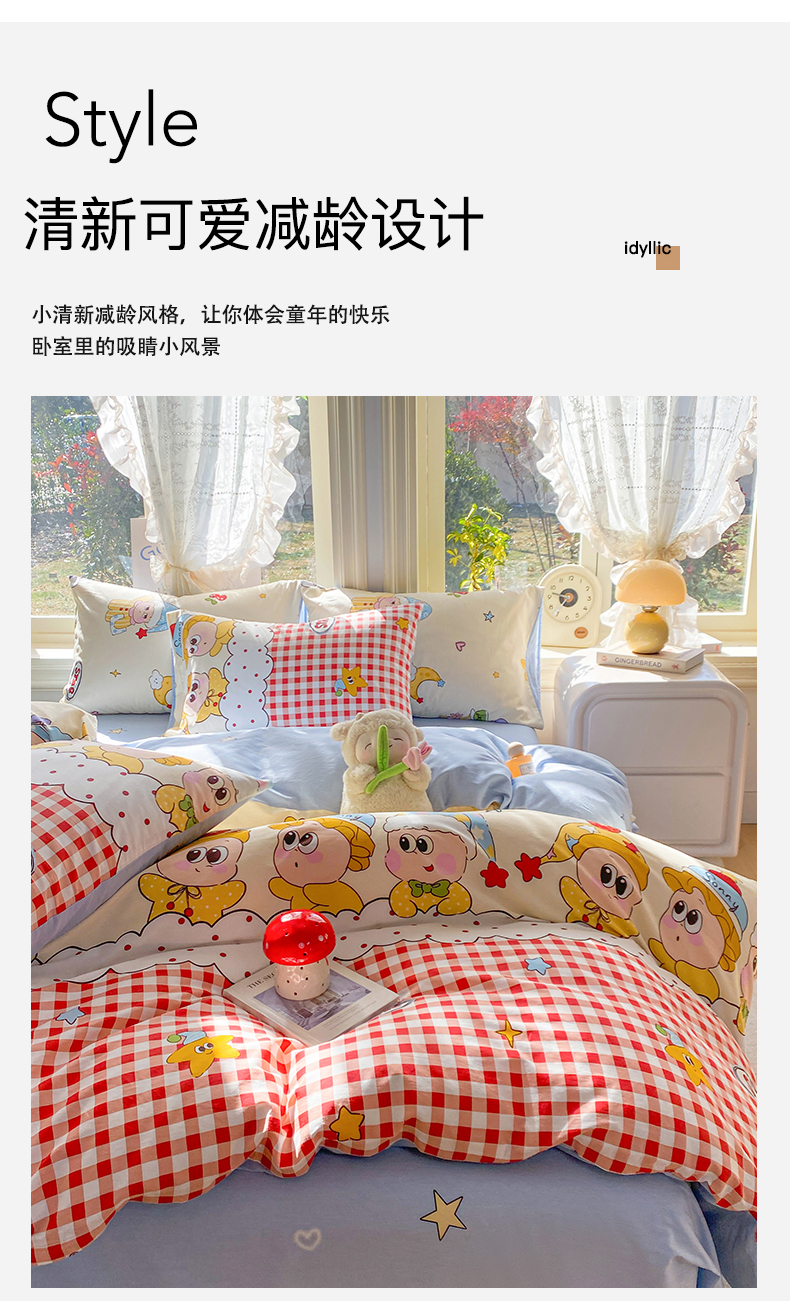 当前位置: 91家纺网 > 商品网购 > 床品套件 > 四件套 > 全棉普通四件套 > 黑马家居 2026新款13070全棉印花小清新卡通花卉四件套系列 晚安星星人