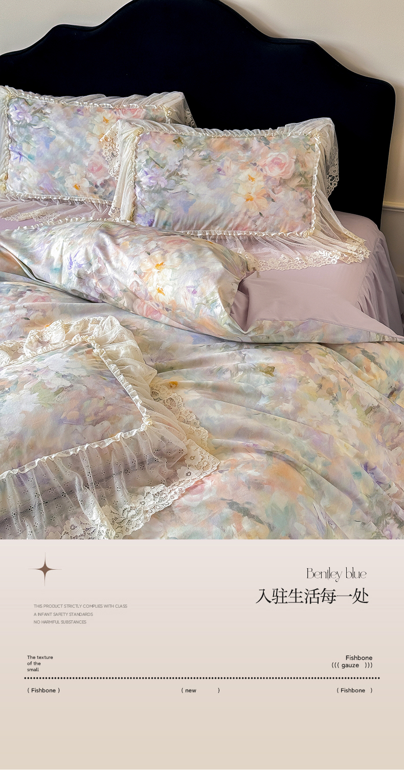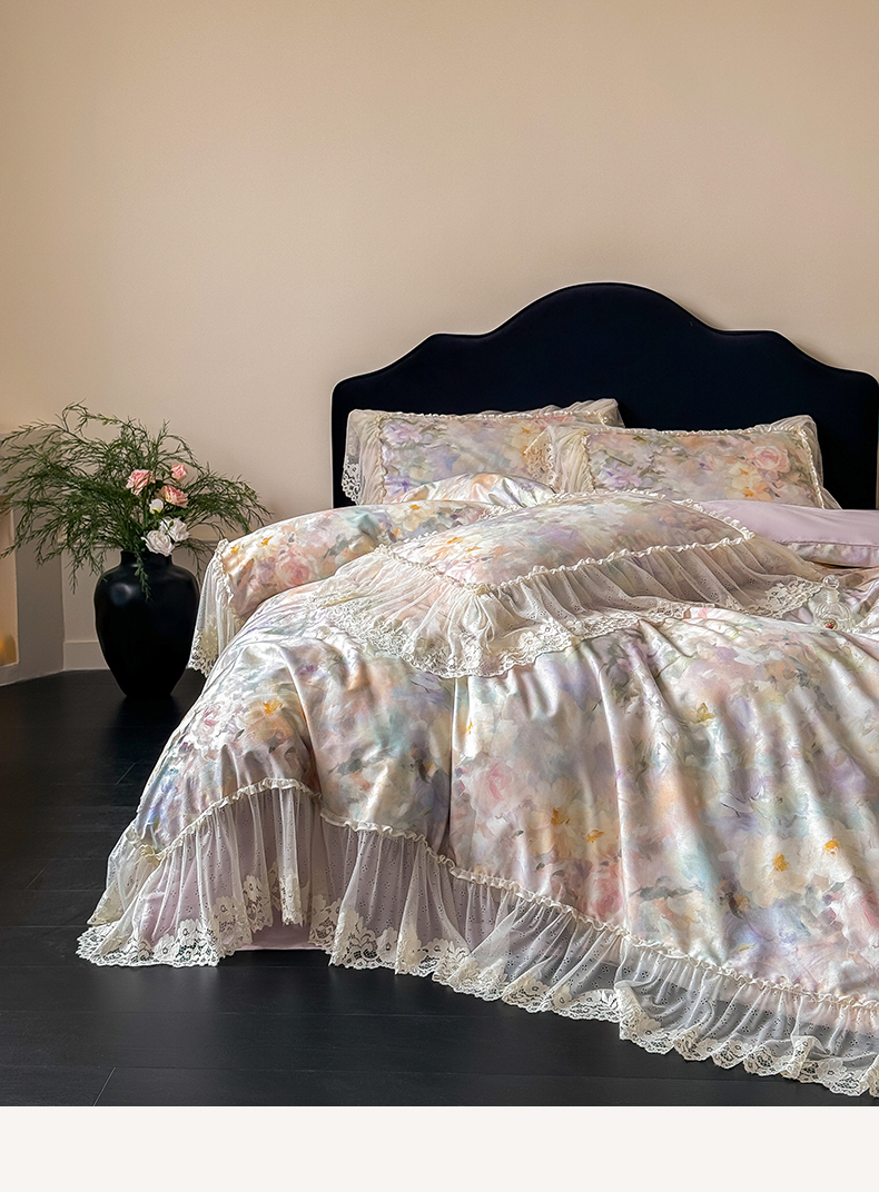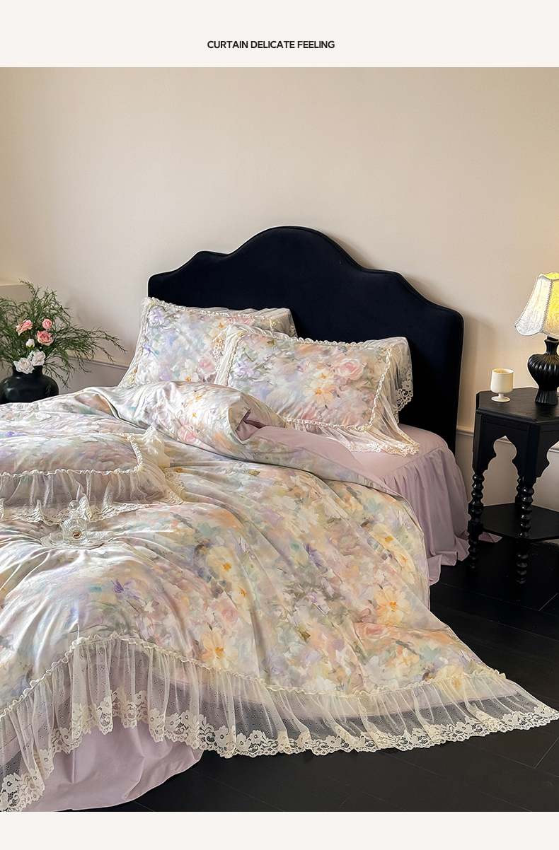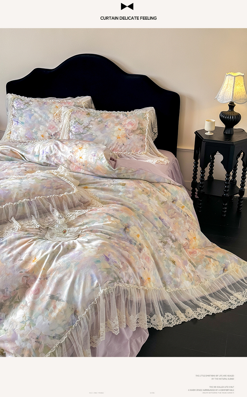 当前位置: 91家纺网 > 商品网购 > 床品套件 > 四件套 > 全棉普通四件套 > (总)惯盈家纺 2026新款数码印花法式蕾丝床裙款全棉四件套-初夏(含买家秀)