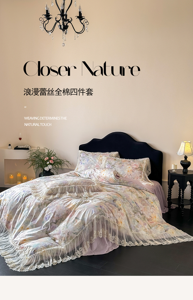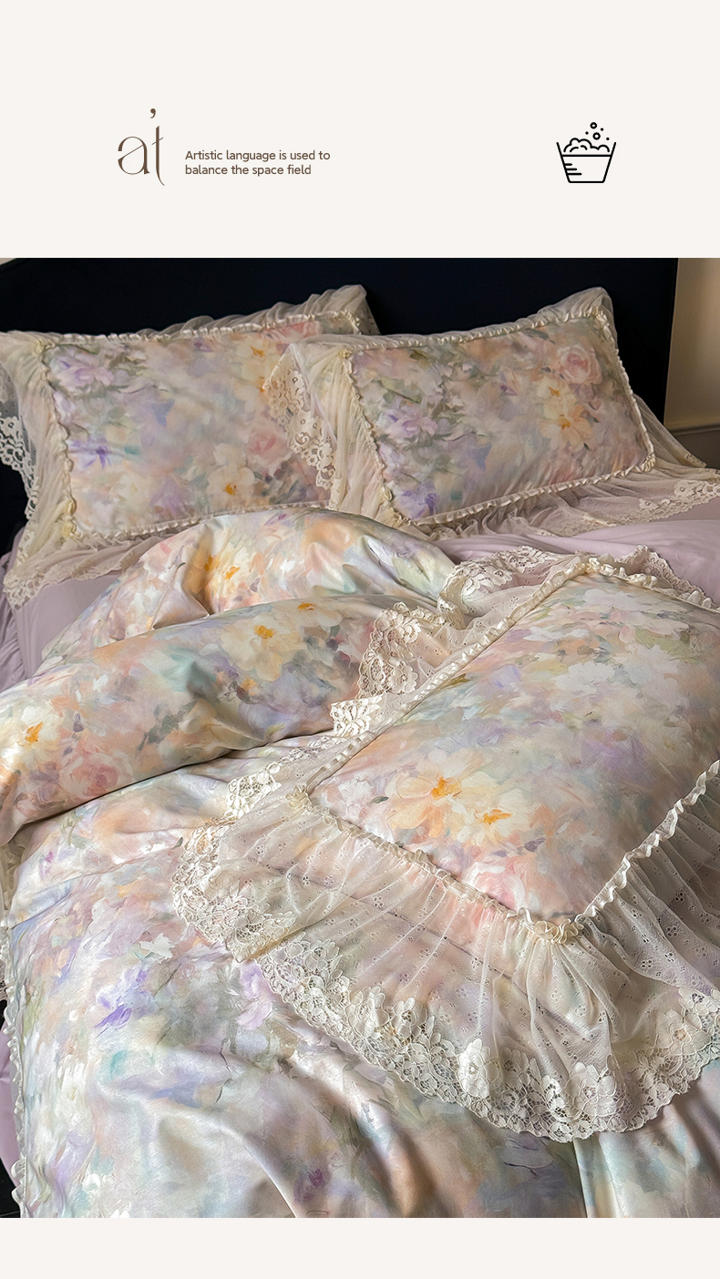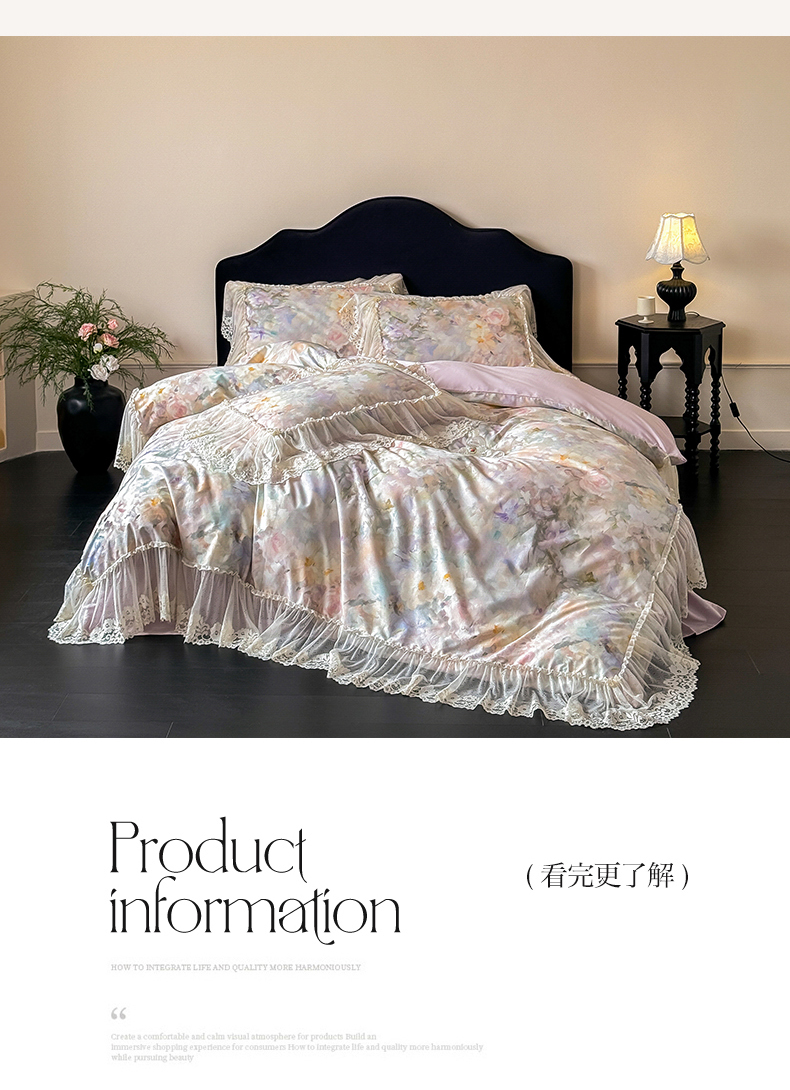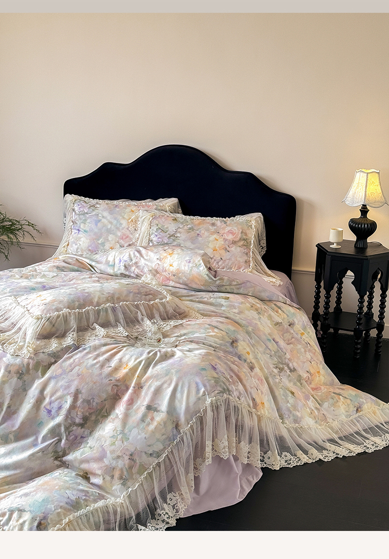 当前位置: 91家纺网 > 商品网购 > 床品套件 > 四件套 > 全棉普通四件套 > (总)惯盈家纺 2026新款数码印花法式蕾丝床裙款全棉四件套-初夏(含买家秀)