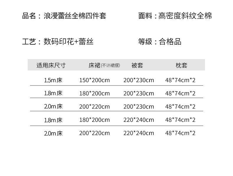 1.8m床裙款四件套-被套200*230 | ¥220.00 |