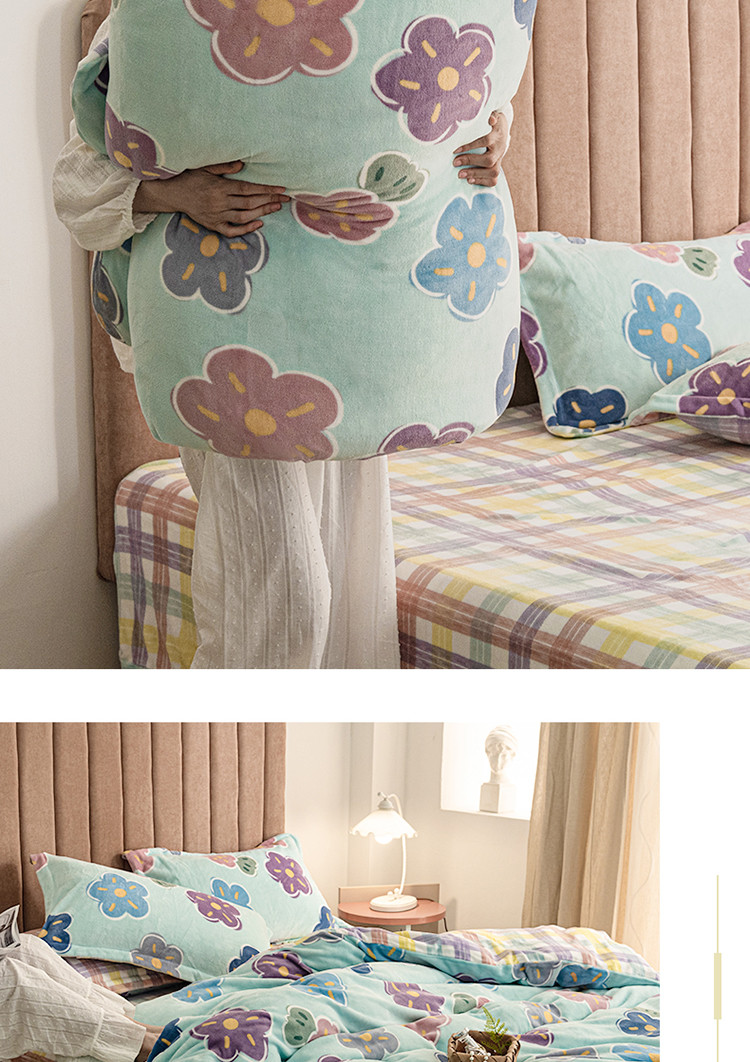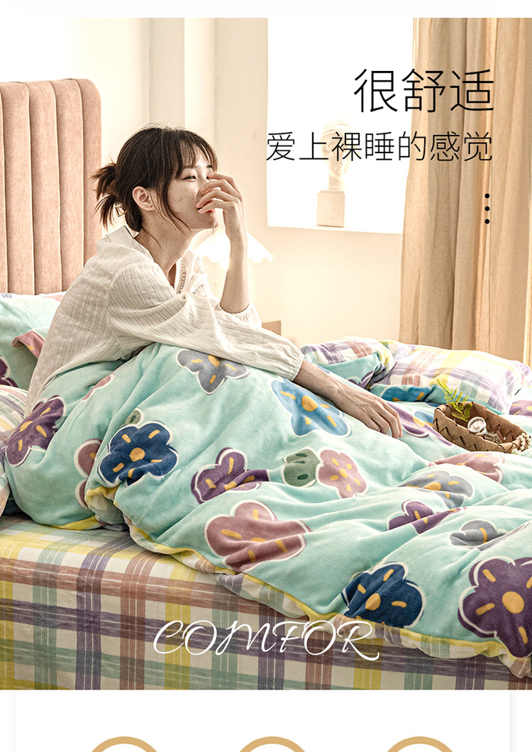 (总)佳梦家纺 2021新款婴儿绒刺绣款四件套,绿色,紫色