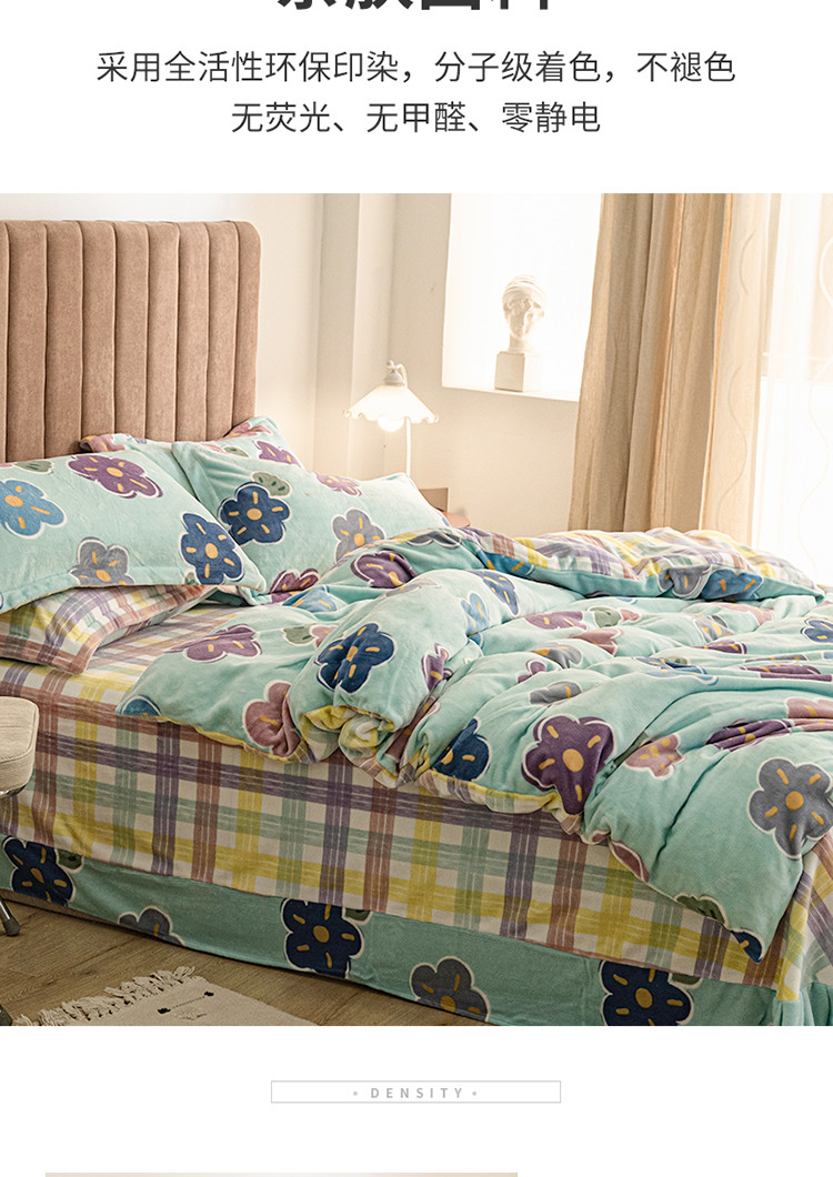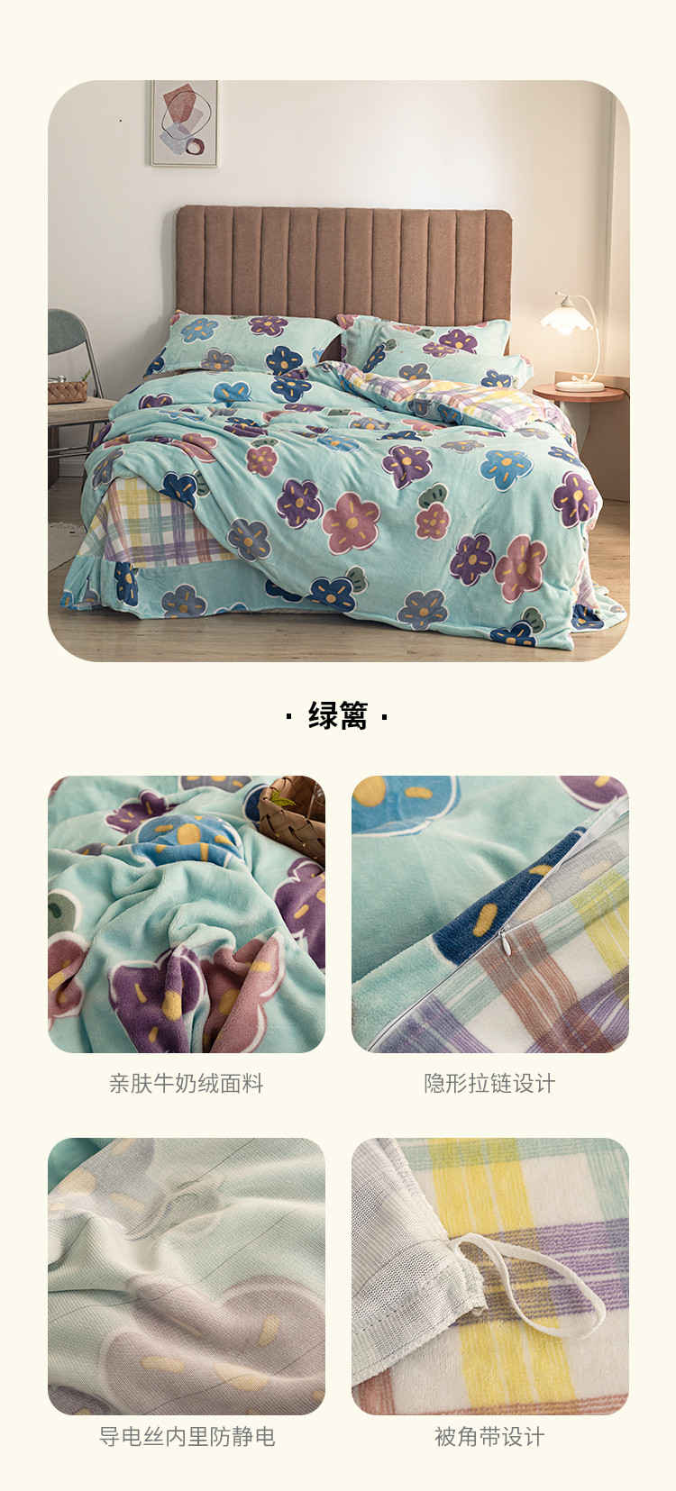佳梦家纺 2021新款牛奶绒印花四件套 绿篱