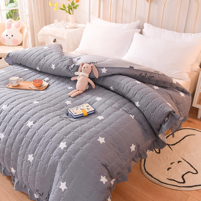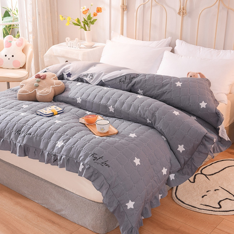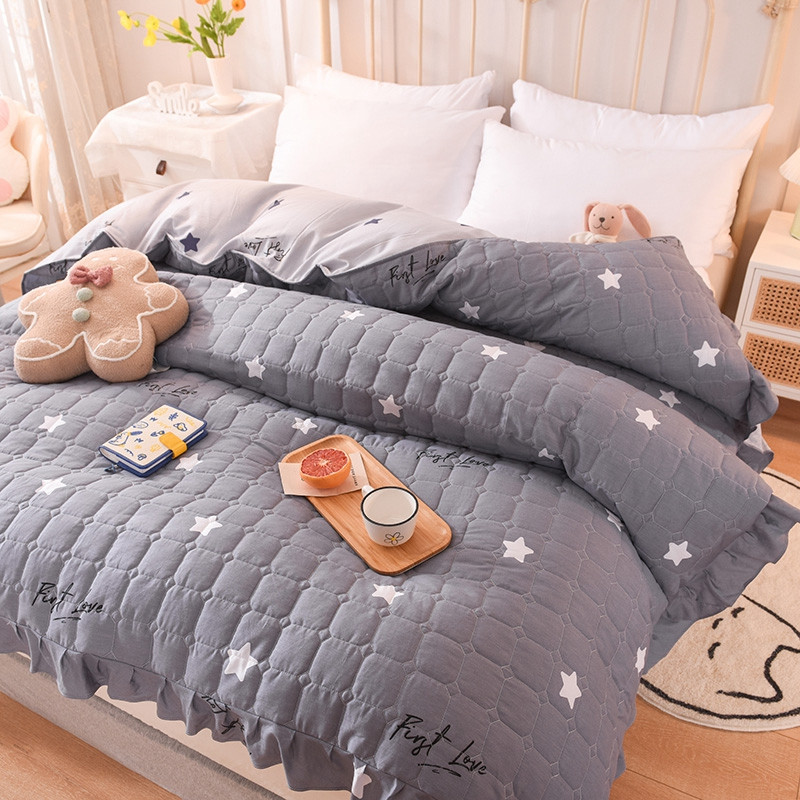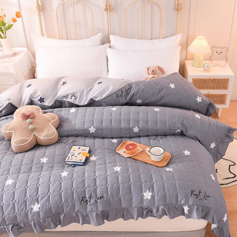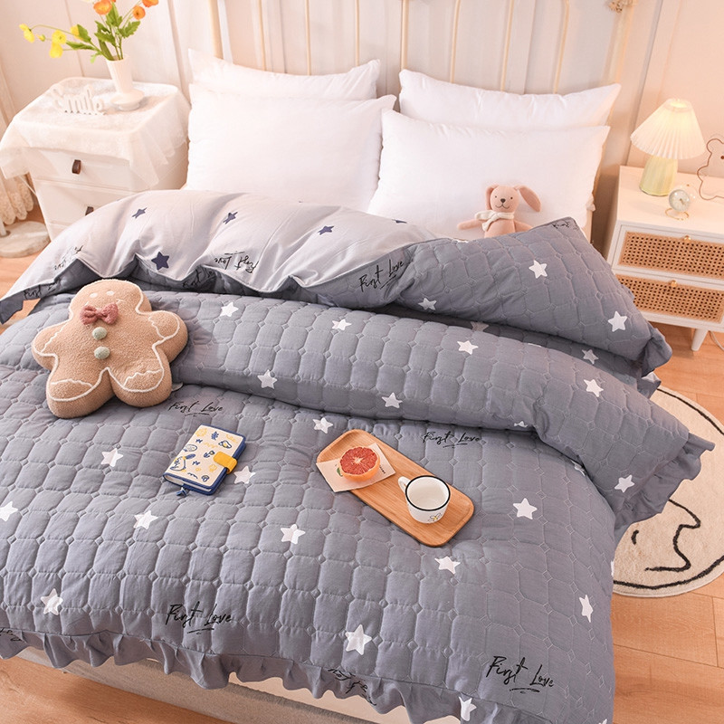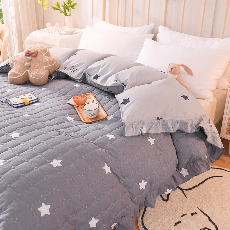 甜之梦 2025新款全棉印花夹棉抗菌被套 纯色星空