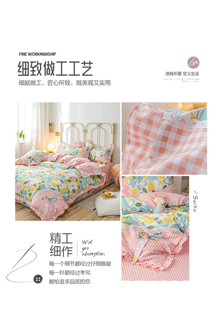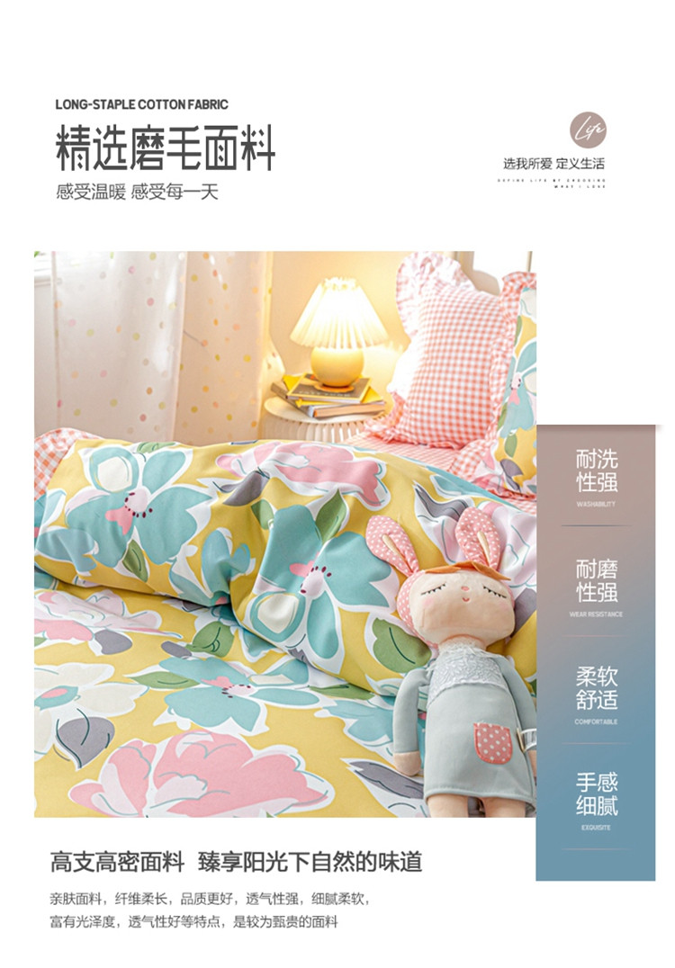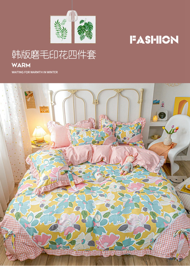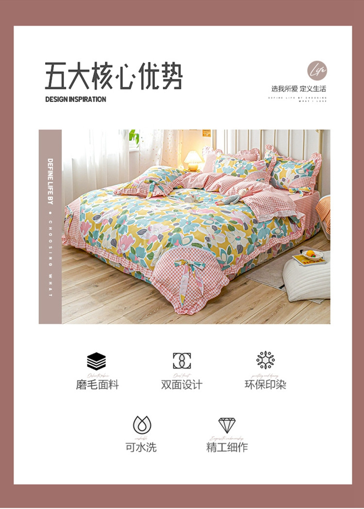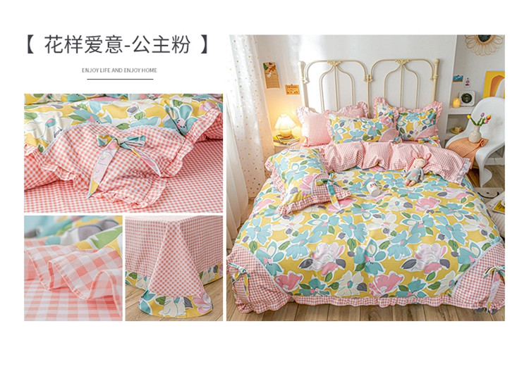 商品名称:靓生活 2021新款韩版磨毛四件套 花样爱意-公主粉