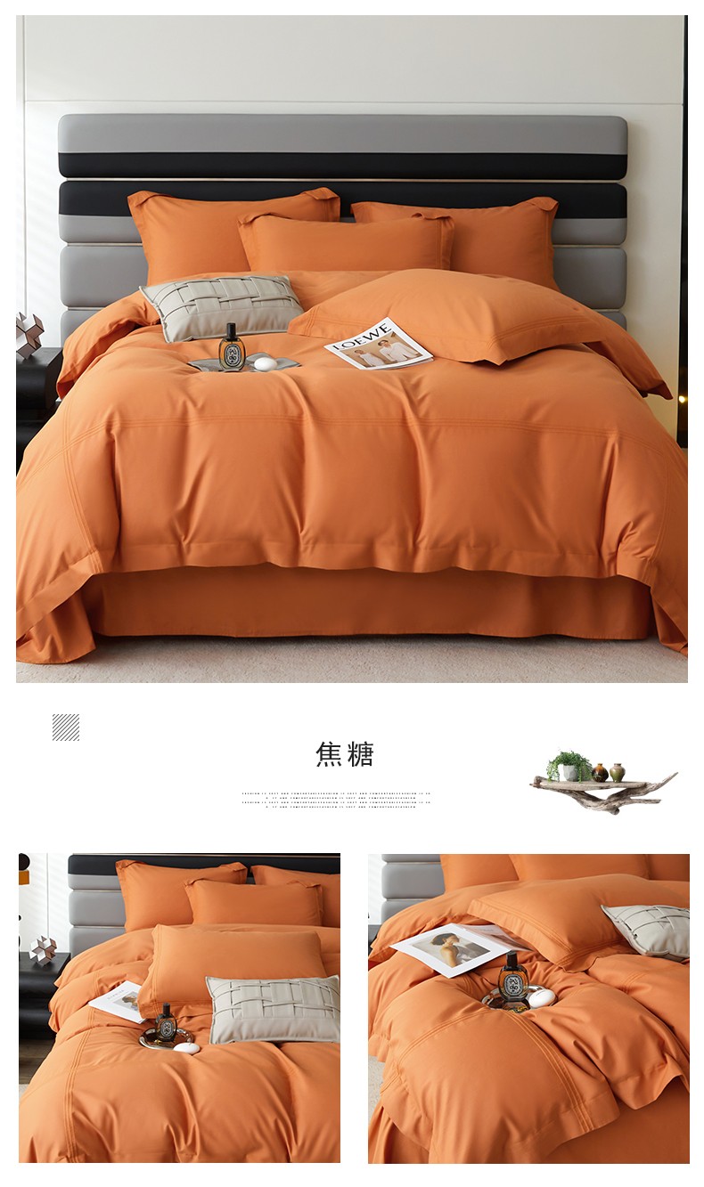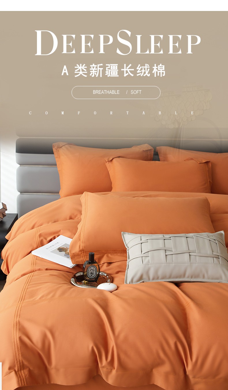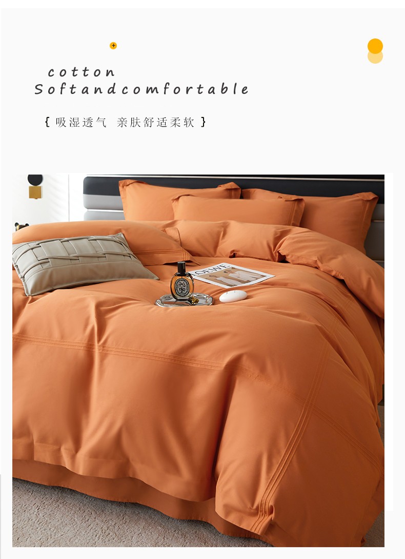 (总)安妮家居 2025新款100S长绒棉贡缎纯色四件套,水漾蓝,胧月灰,奶白色,蔷薇粉,柔缦紫,砂砾咖