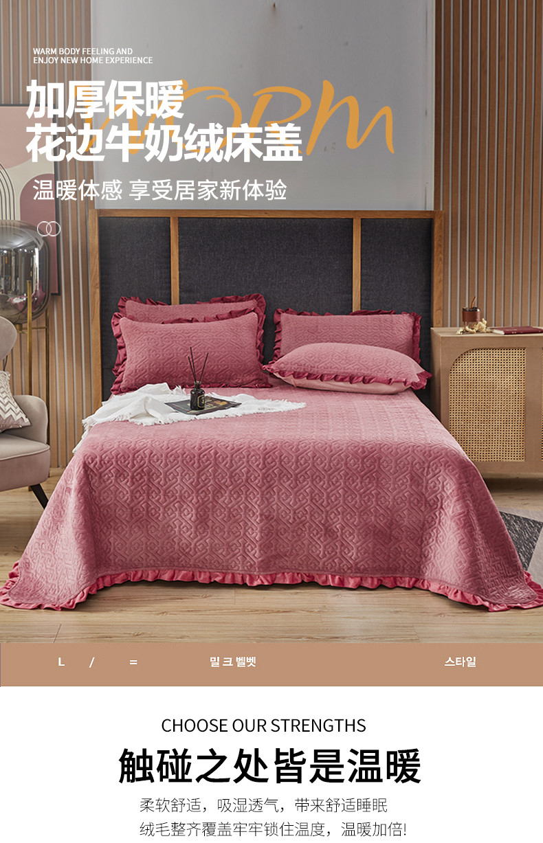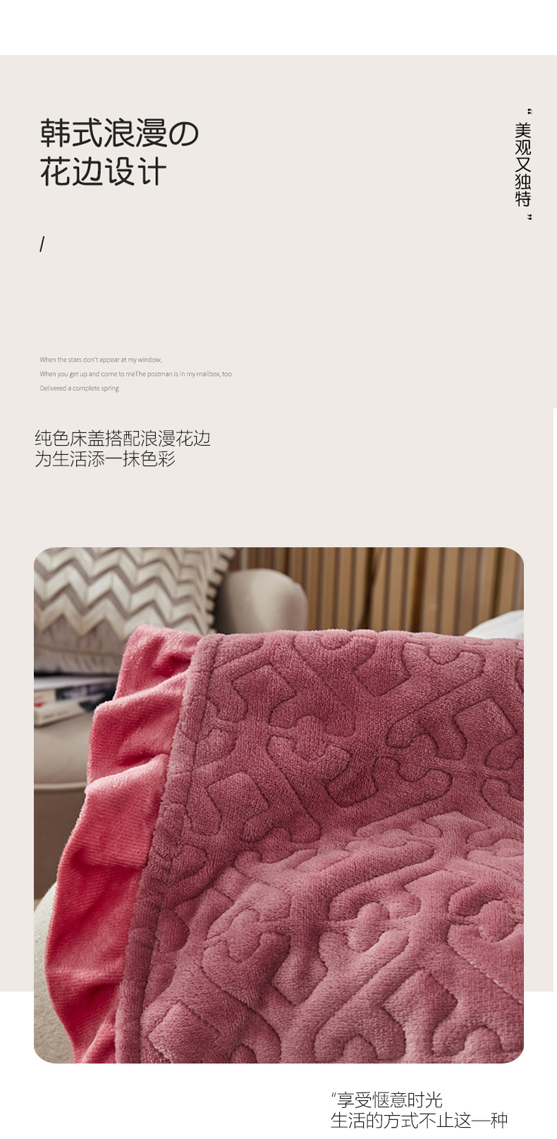 • 91家纺网 家纺一手货源 找家纺 佳梦家纺 牛奶绒纯色花边床盖绗缝夹棉绒毯三件套榻榻米席梦思床垫子 豆沙