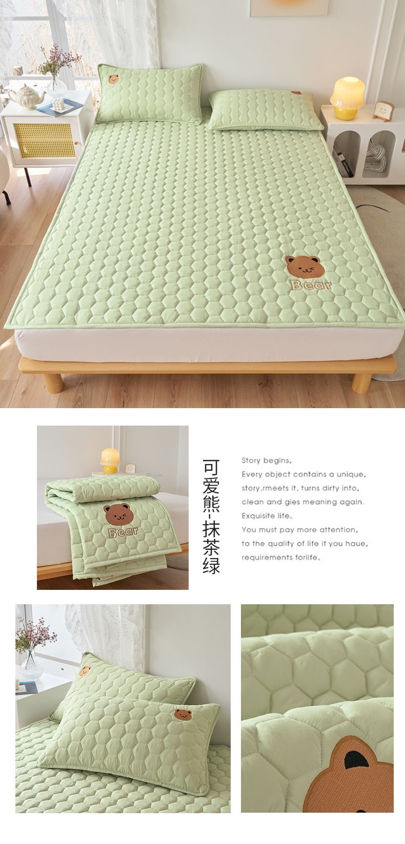 当前位置: 91家纺网 > 商品网购 > 床垫/床褥 > 普通床垫 > 恋绒家纺 2025新款A类刺绣款床褥学生软床垫子床护垫软垫(图2) 可爱熊-抹茶绿