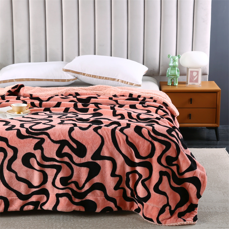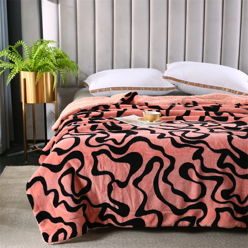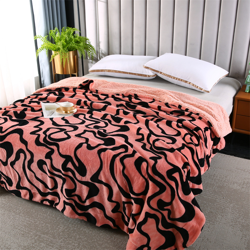 (总)巴木赫 2024新款300克印花泡泡毛毯毯子,大理石纹,红棕,奶白,浅咖,深灰,水墨画,紫色,棕色