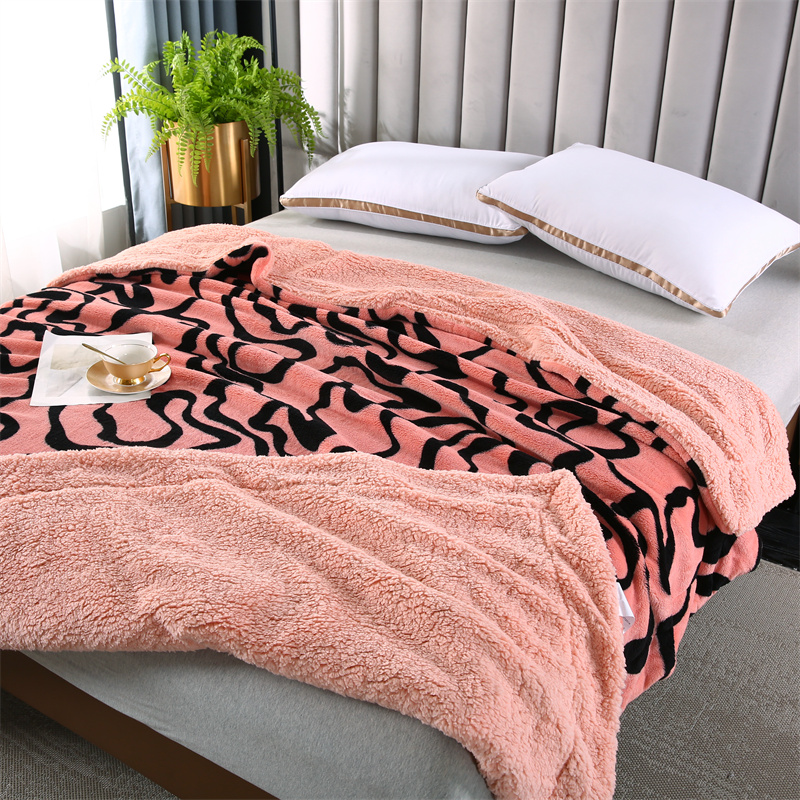 商品名称:巴木赫 2024新款熊猫绒配同色羊羔绒毛毯 妃红配色羊羔绒