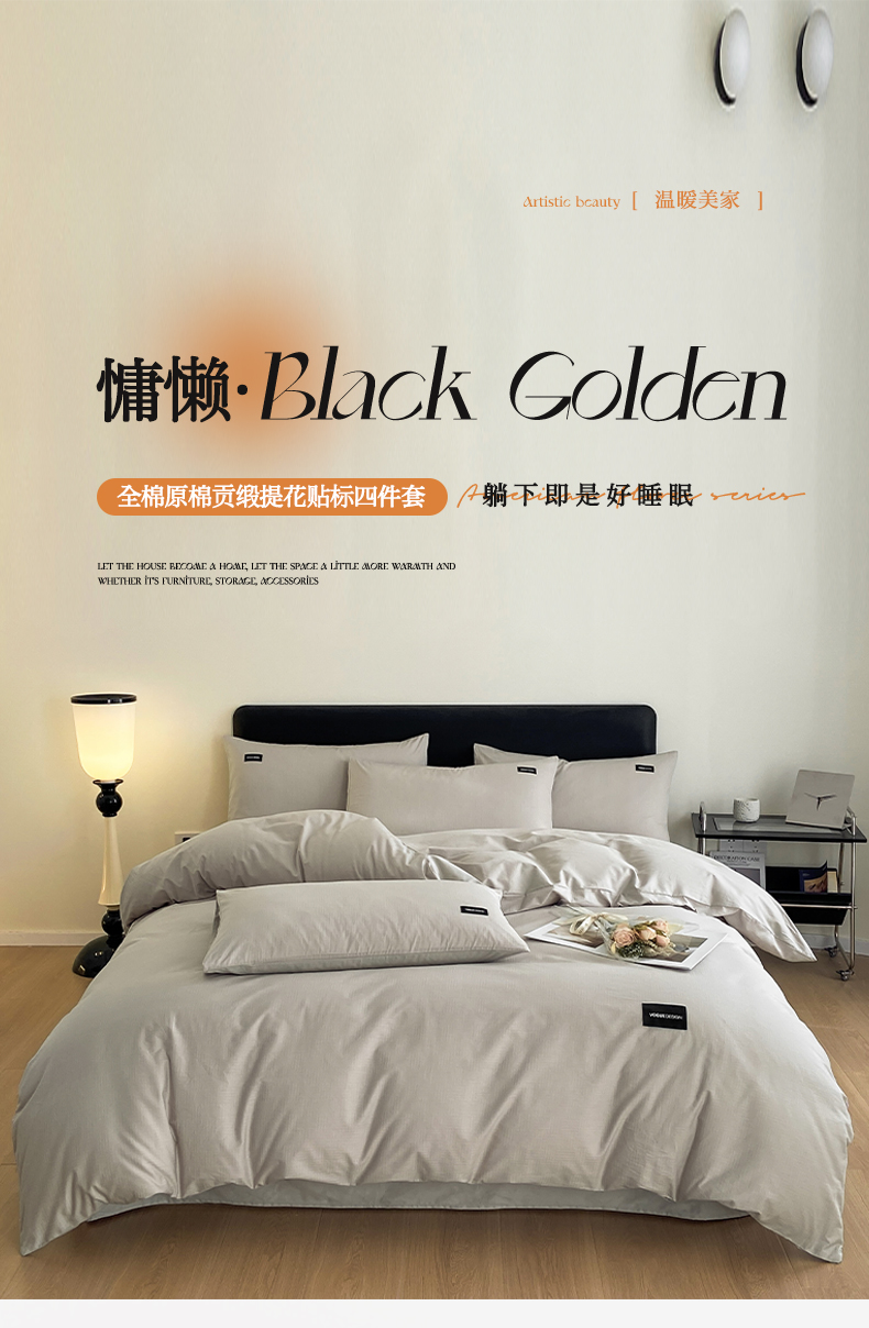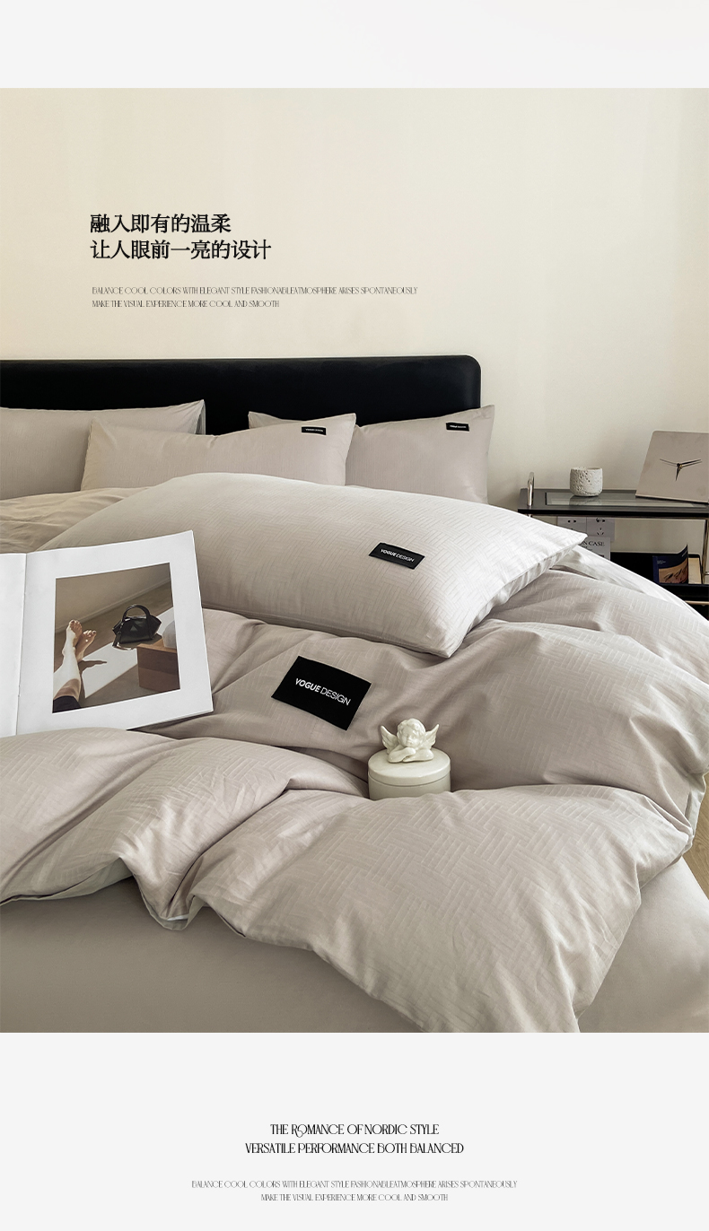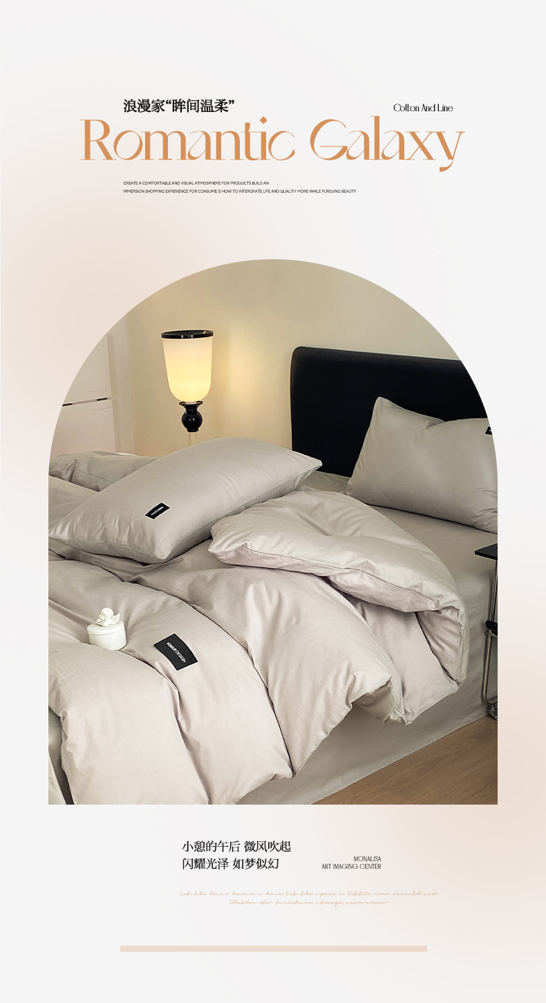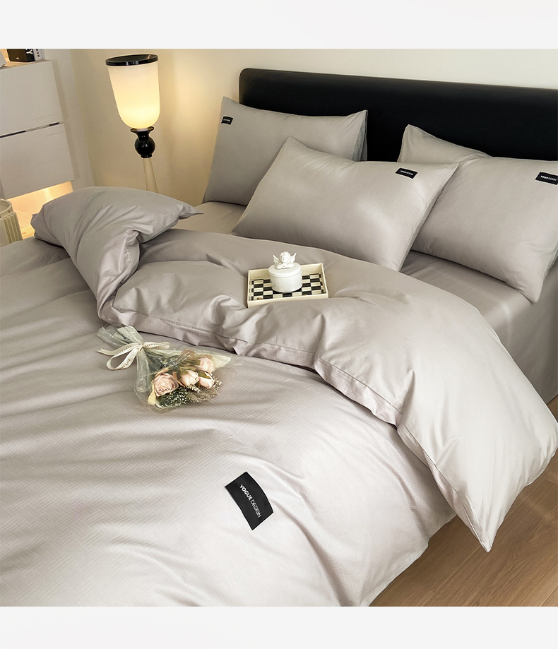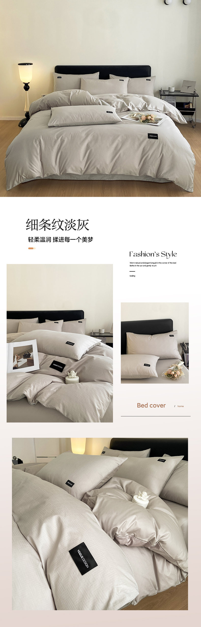 当前位置: 91家纺网 > 商品网购 > 床品套件 > 四件套 > 全棉普通四件套 > 莱登卡奴 2024新款全棉原棉贡缎提花贴标款系列四件套 细条纹淡灰