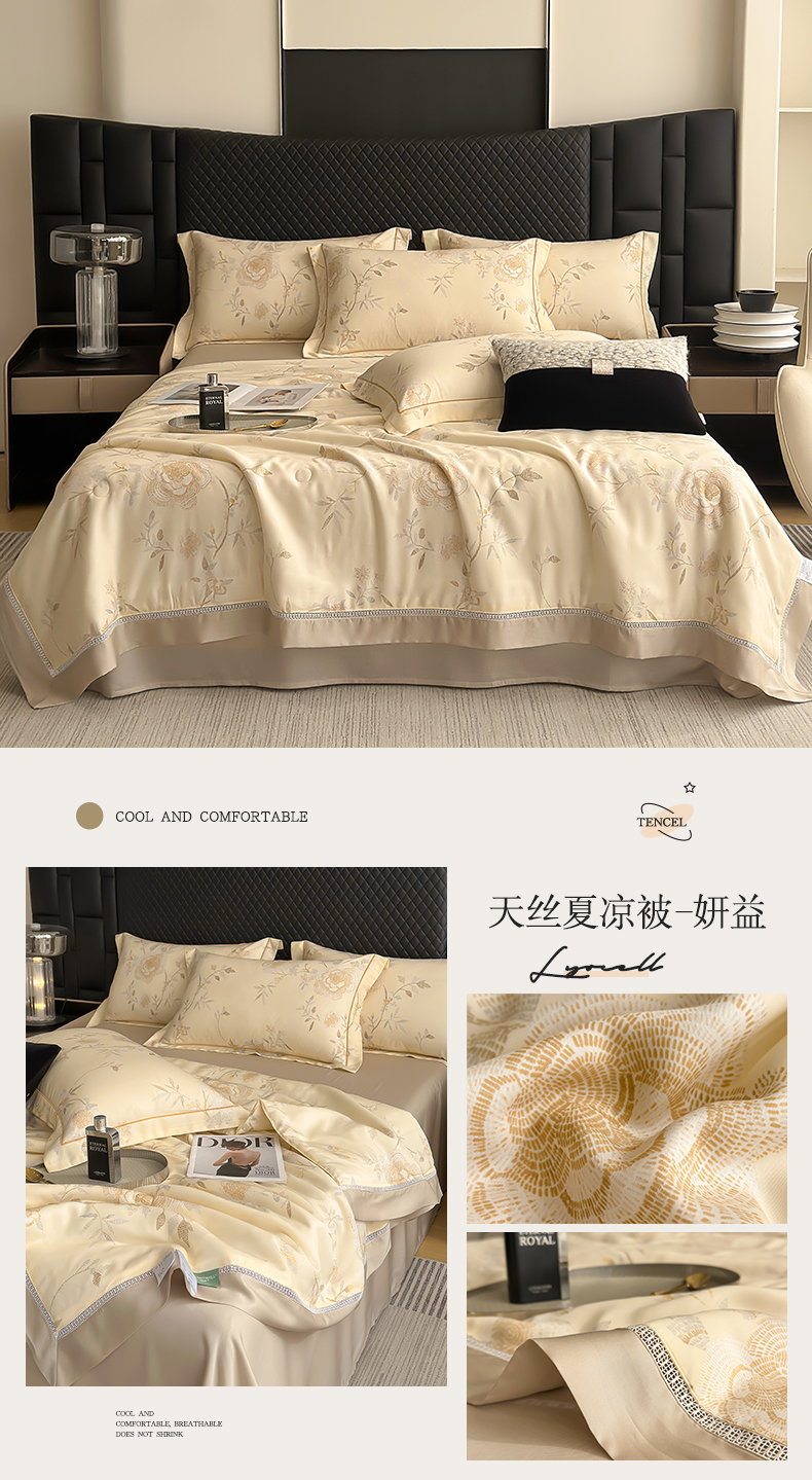 商品名称:娇逸家居 2025新款50支印花莱赛尔天丝夏被镂空款花边夏凉被 妍益