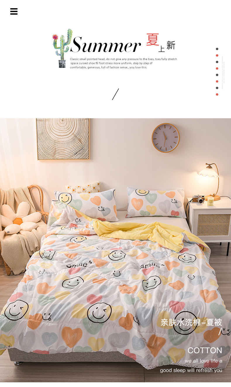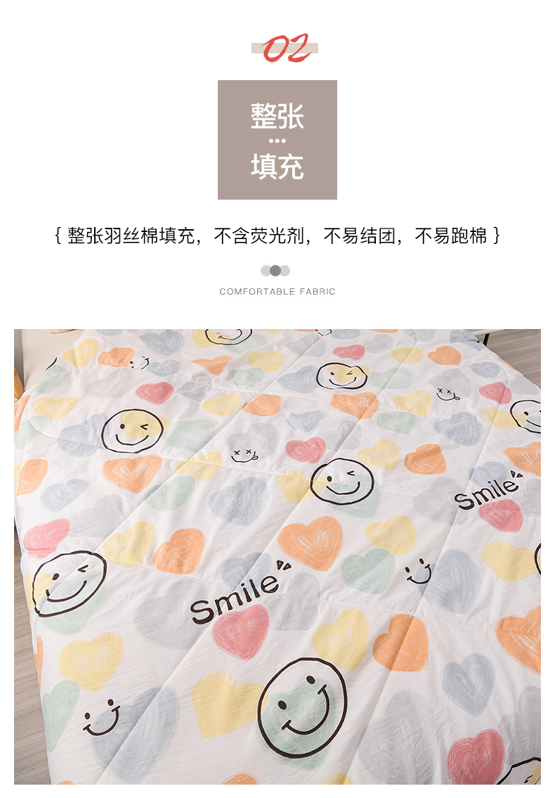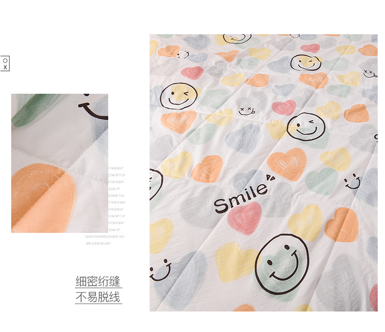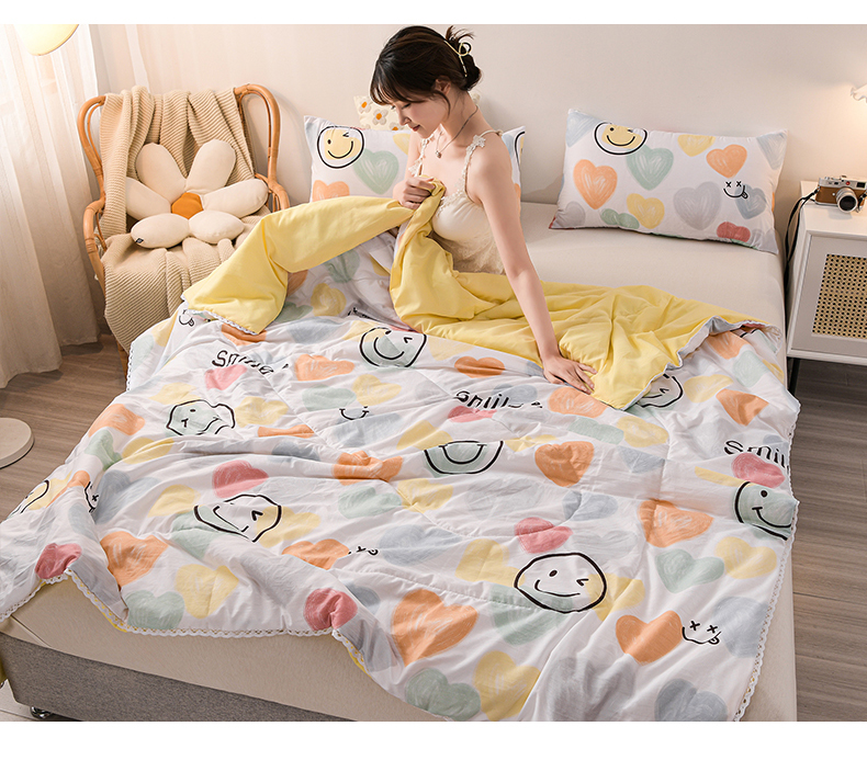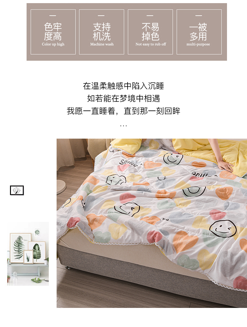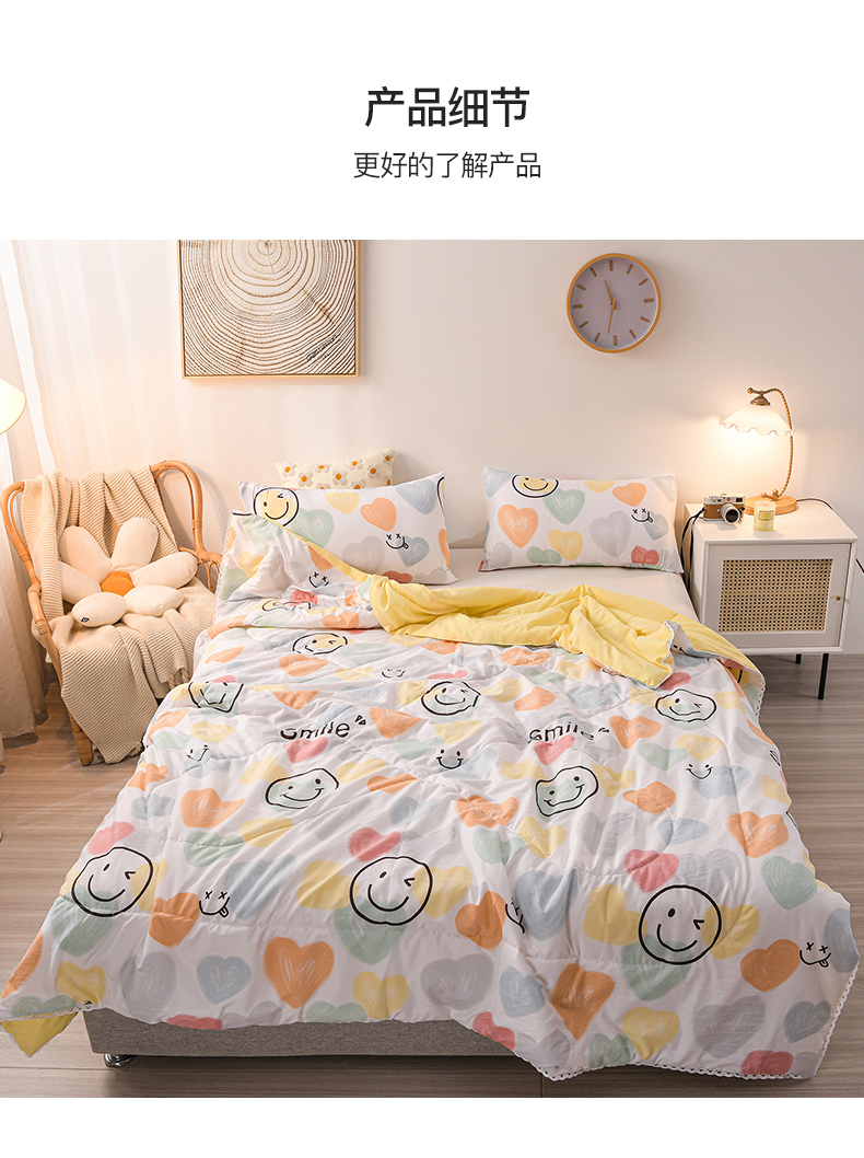 鑫贝阳 2025新款亲肤水洗棉小花边印花夏被 爱心笑脸