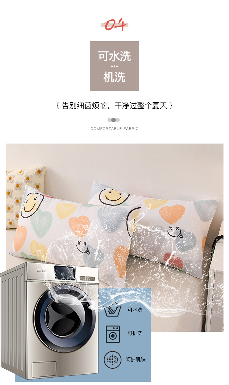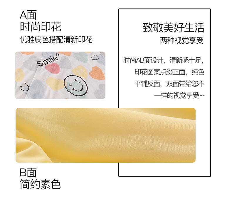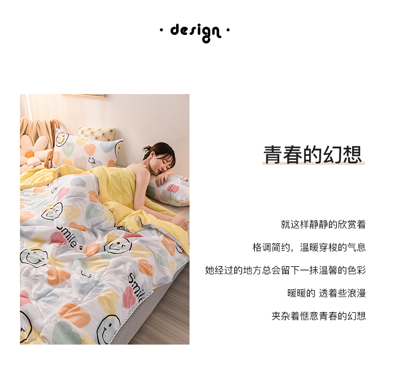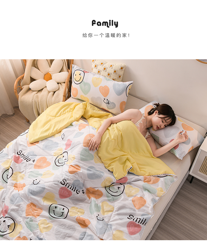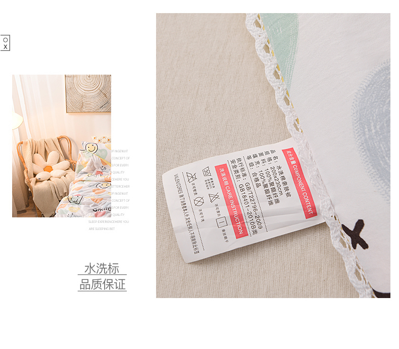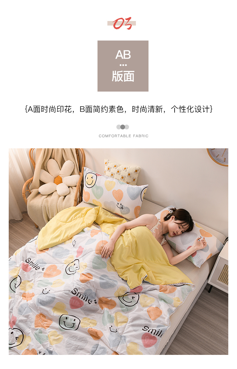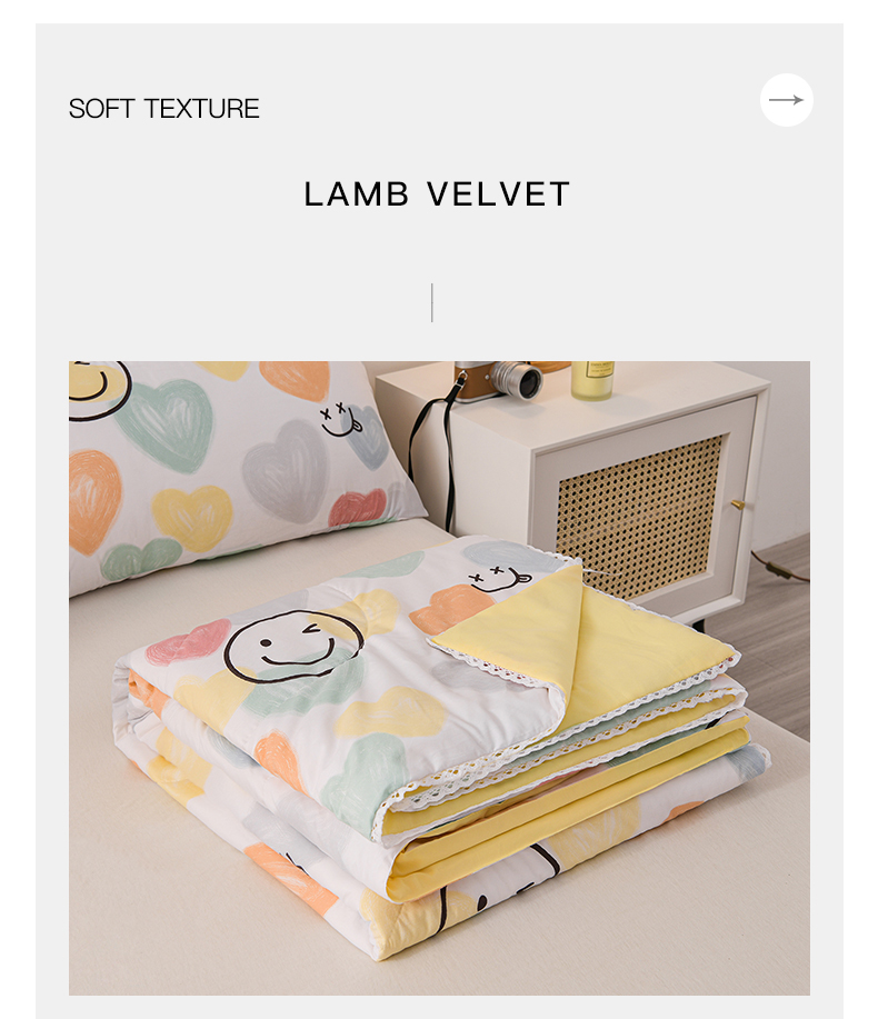 鑫贝阳 2025新款亲肤水洗棉小花边印花夏被 爱心笑脸