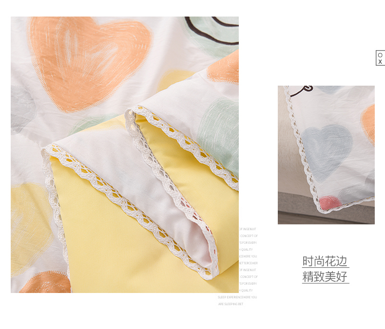 商品名称:鑫贝阳 2025新款亲肤水洗棉小花边印花夏被 爱心笑脸
