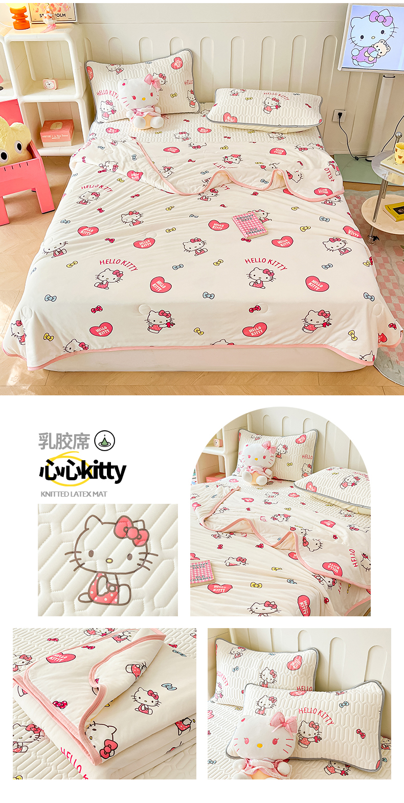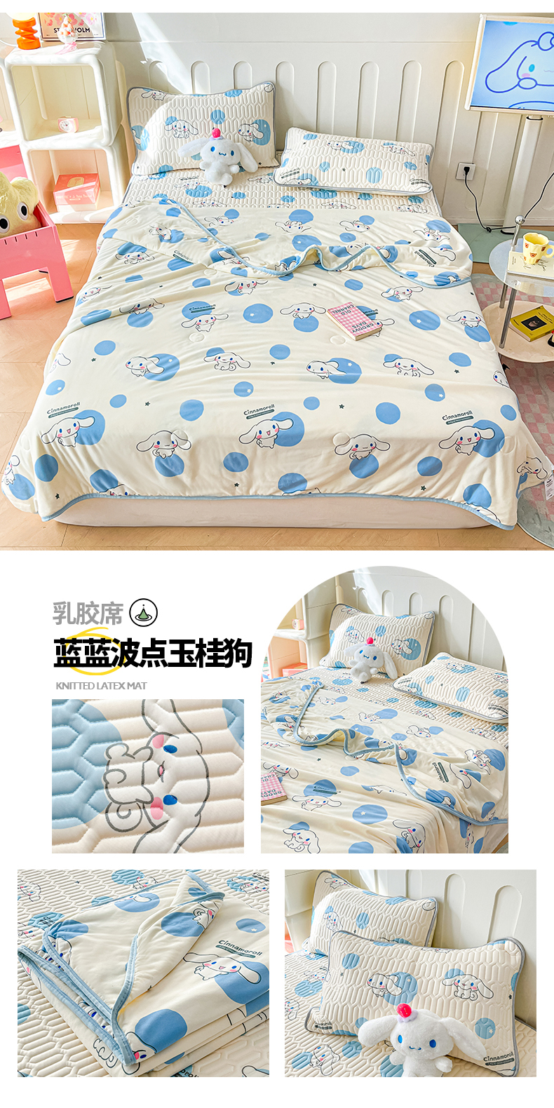商品名称:(总)金爱家2025新款A类三丽鸥高品质可组合凉感丝乳胶席牛奶丝针织棉软糯夏被四件套
