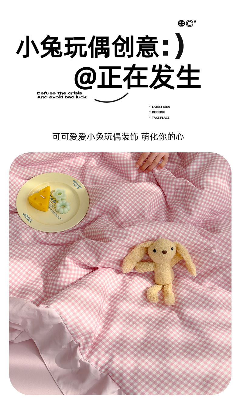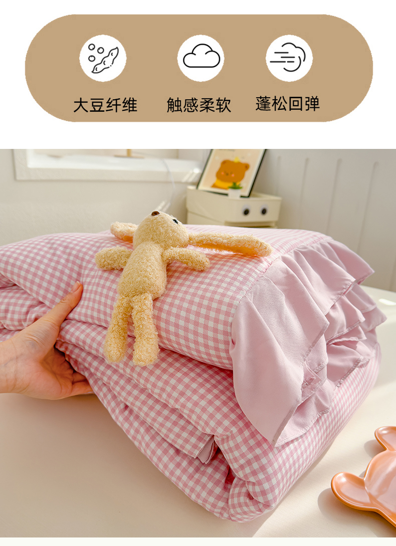 商品名称:默忆 2025新款水洗棉双层纱花边夏被夏凉被空调被被子被芯 粉小格