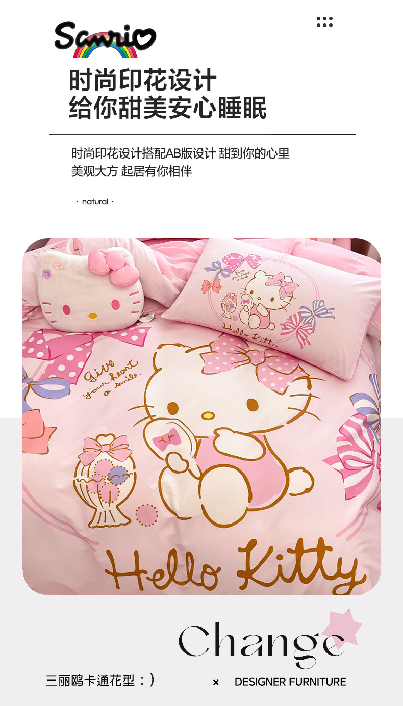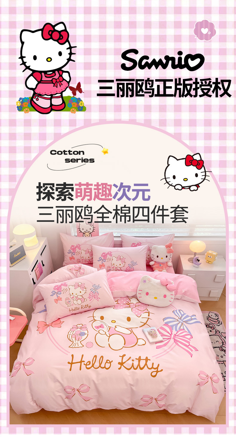 当前位置: 91家纺网 > 商品网购 > 床品套件 > 四件套 > 全棉普通四件套 > 暮思家居 2025新款正版授权三丽鸥大阪全棉数码印花纯棉四件套系列-第三批(专版花型) 大版-美美KT