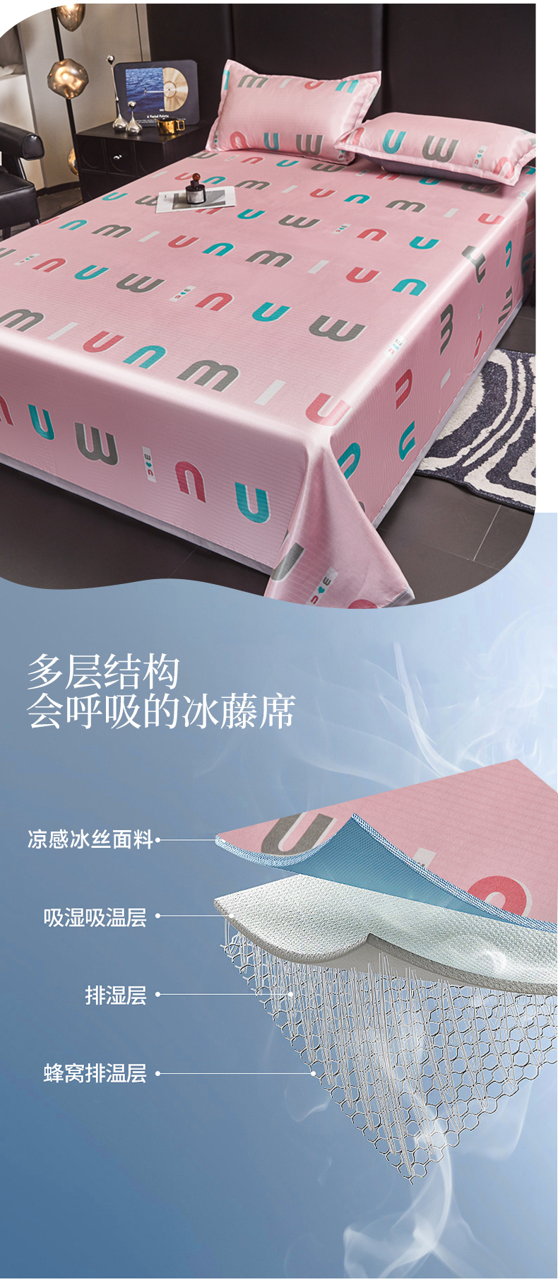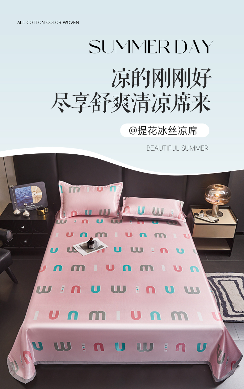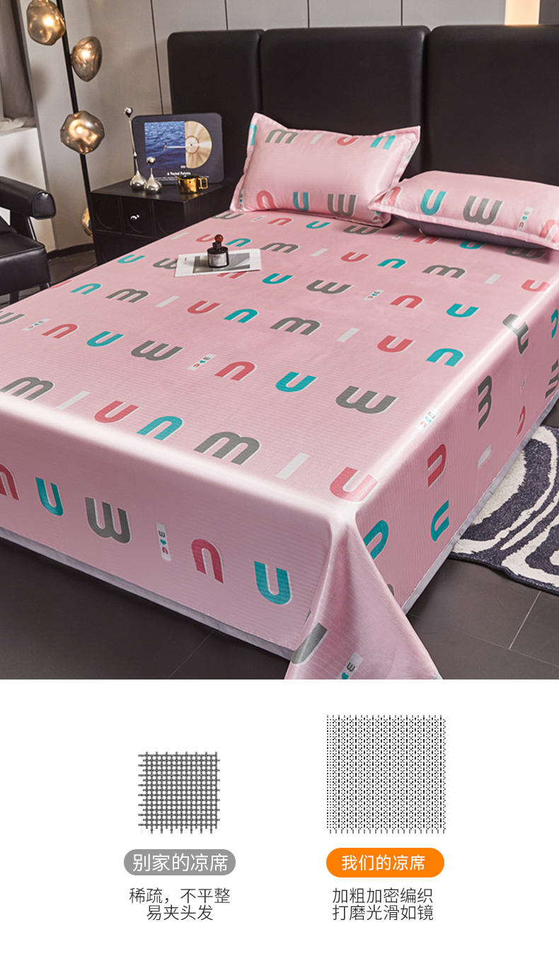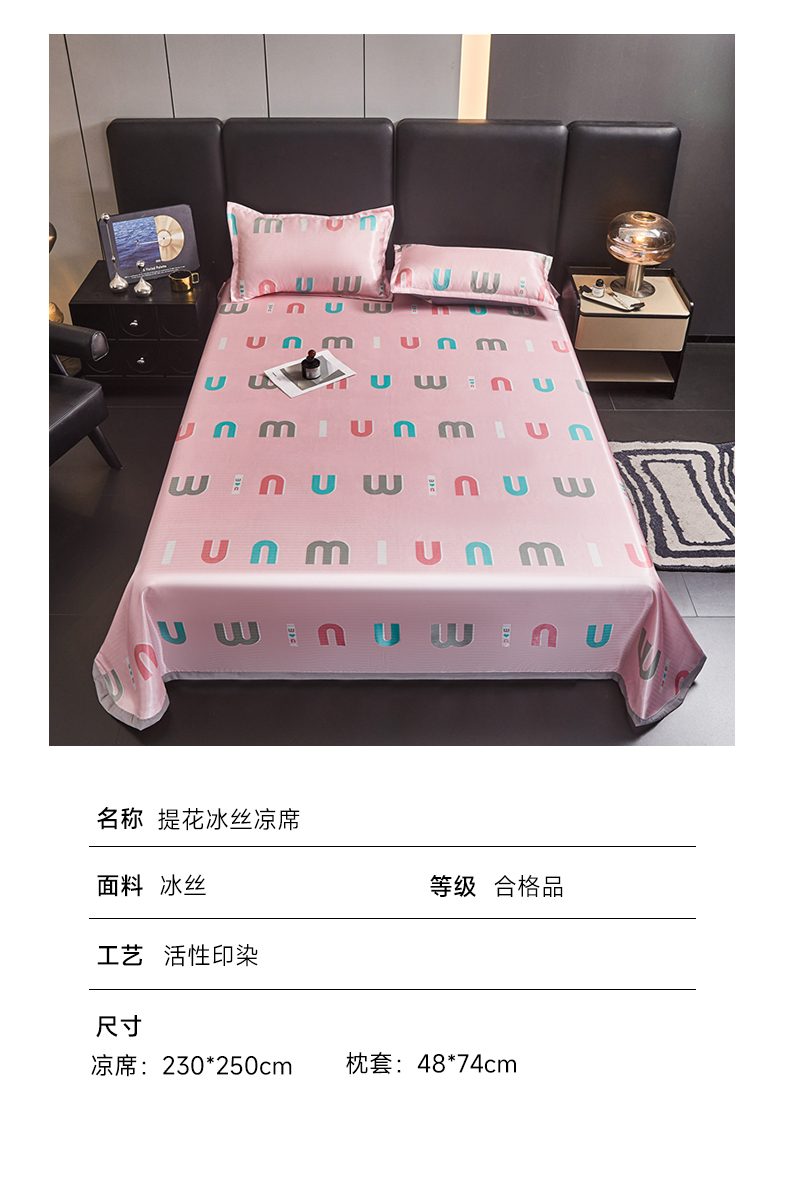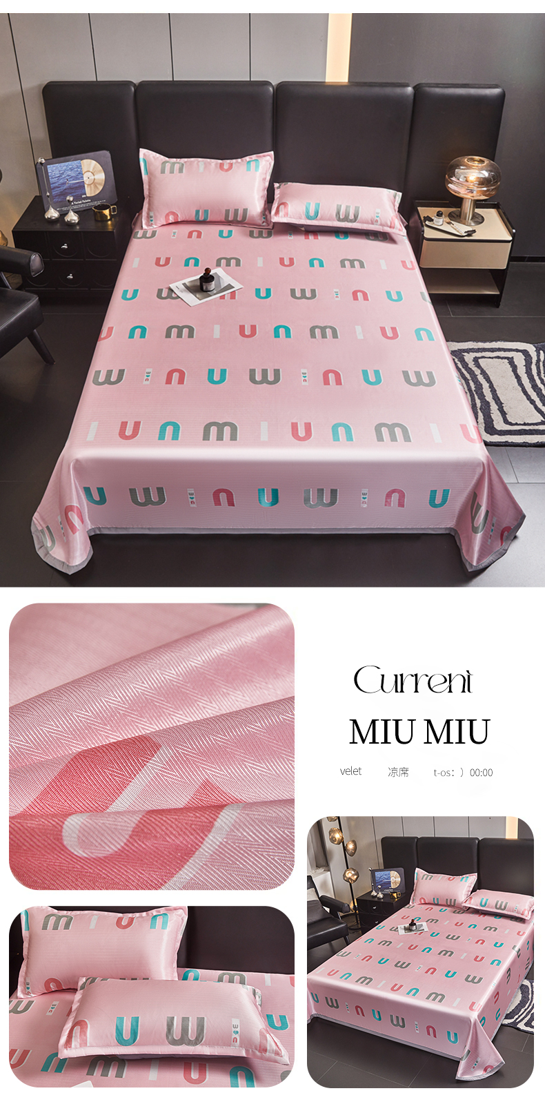 商品名称:悦织湾家纺2025新款斜纹提花冰丝席三件套夏季凉感冰丝席子枕套1对夏凉席床单 MIU MIU