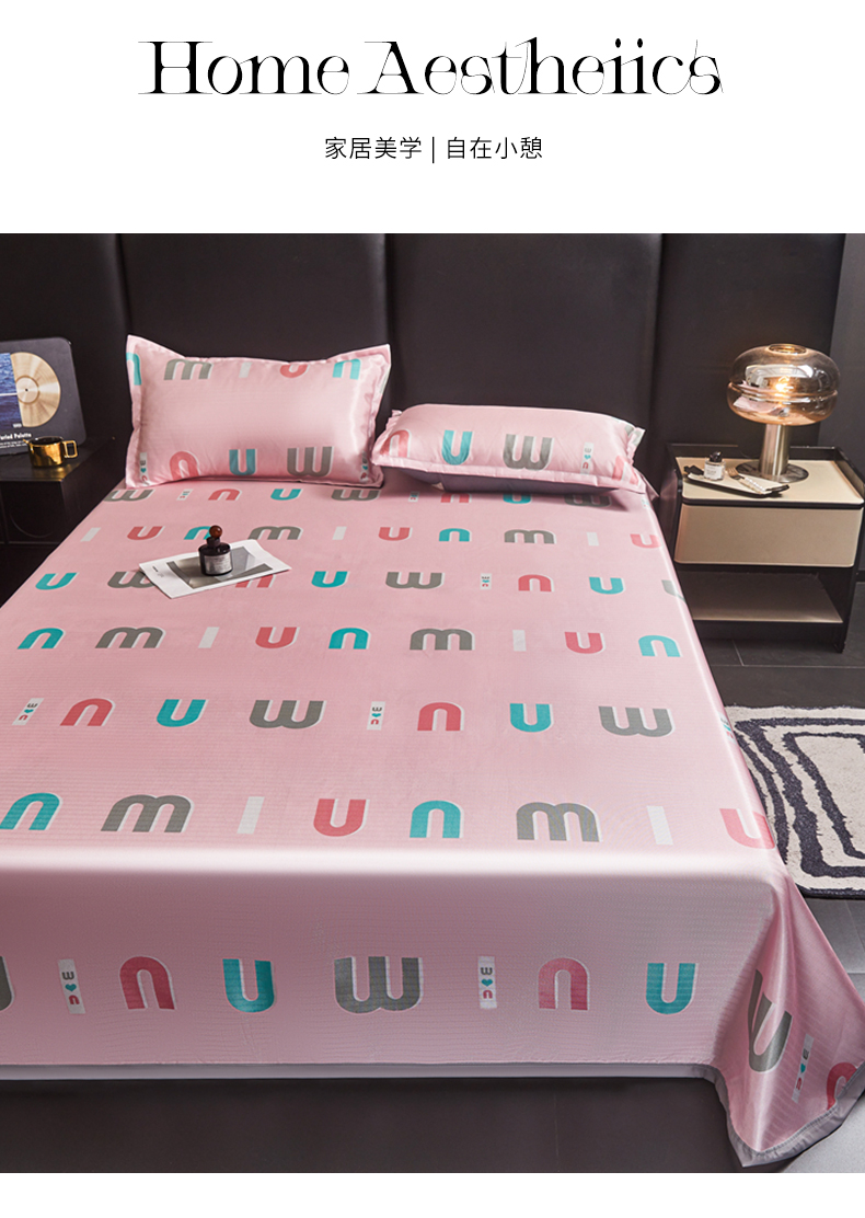 悦织湾家纺2025新款斜纹提花冰丝席三件套夏季凉感冰丝席子枕套1对夏凉席床单 MIU MIU