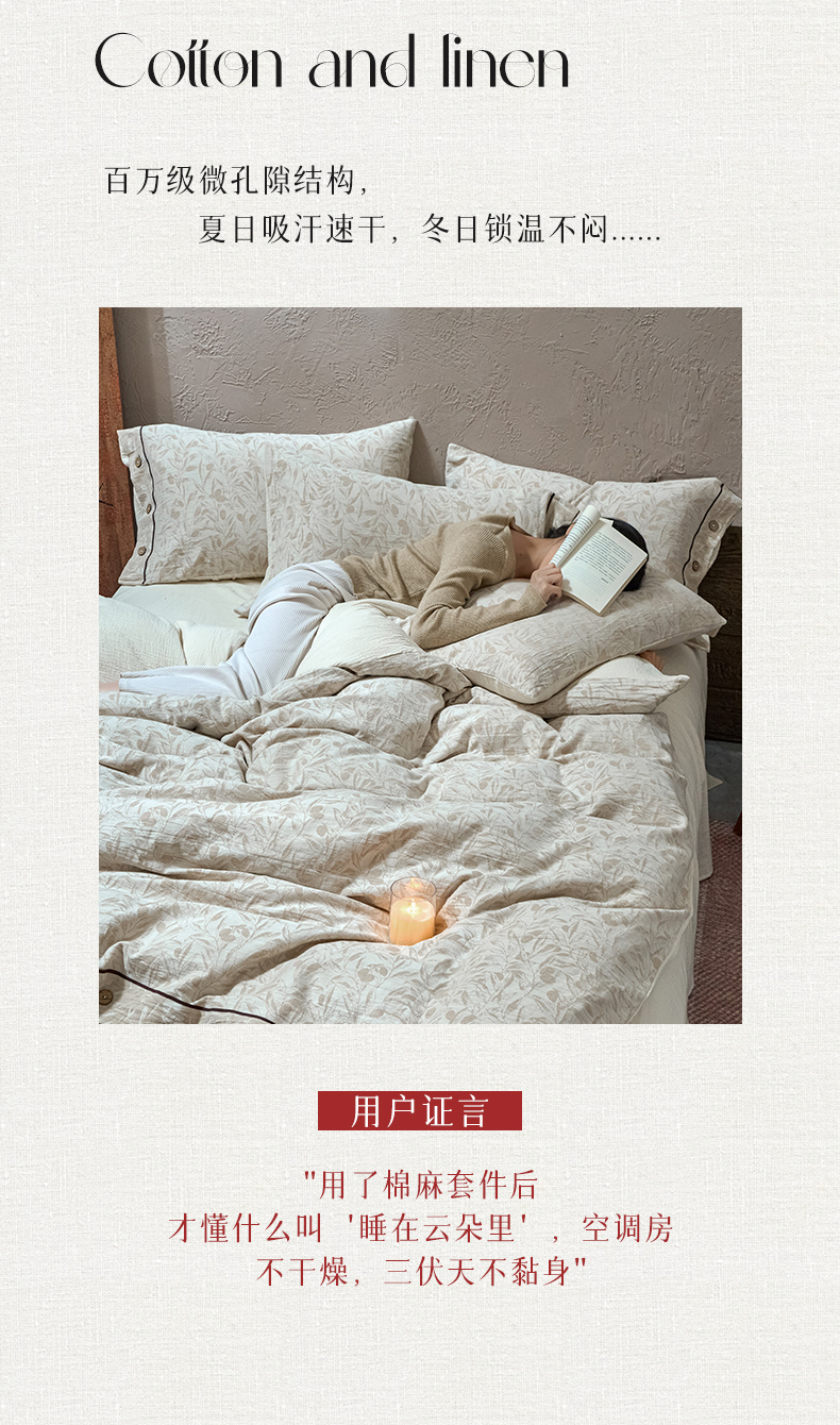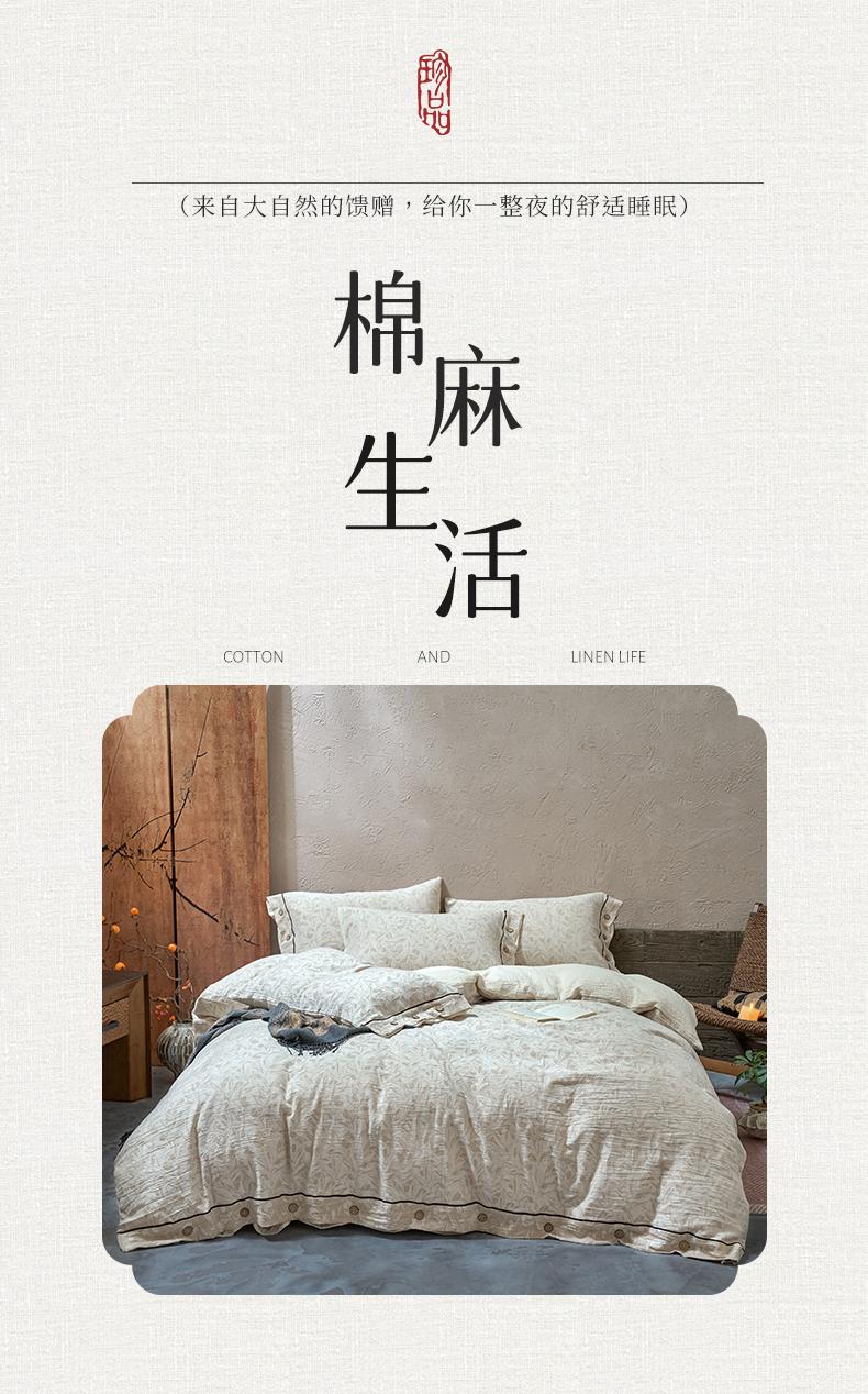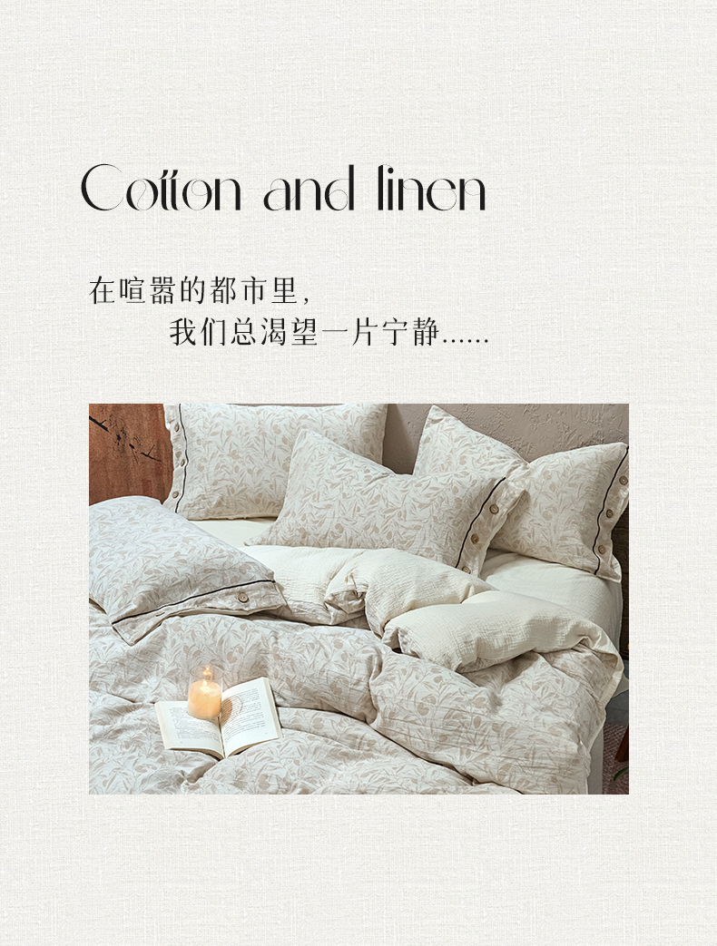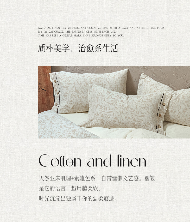 商品名称:春皖家纺 2025新款棉麻大提花双层纱系列四件套-纽扣款 赫素