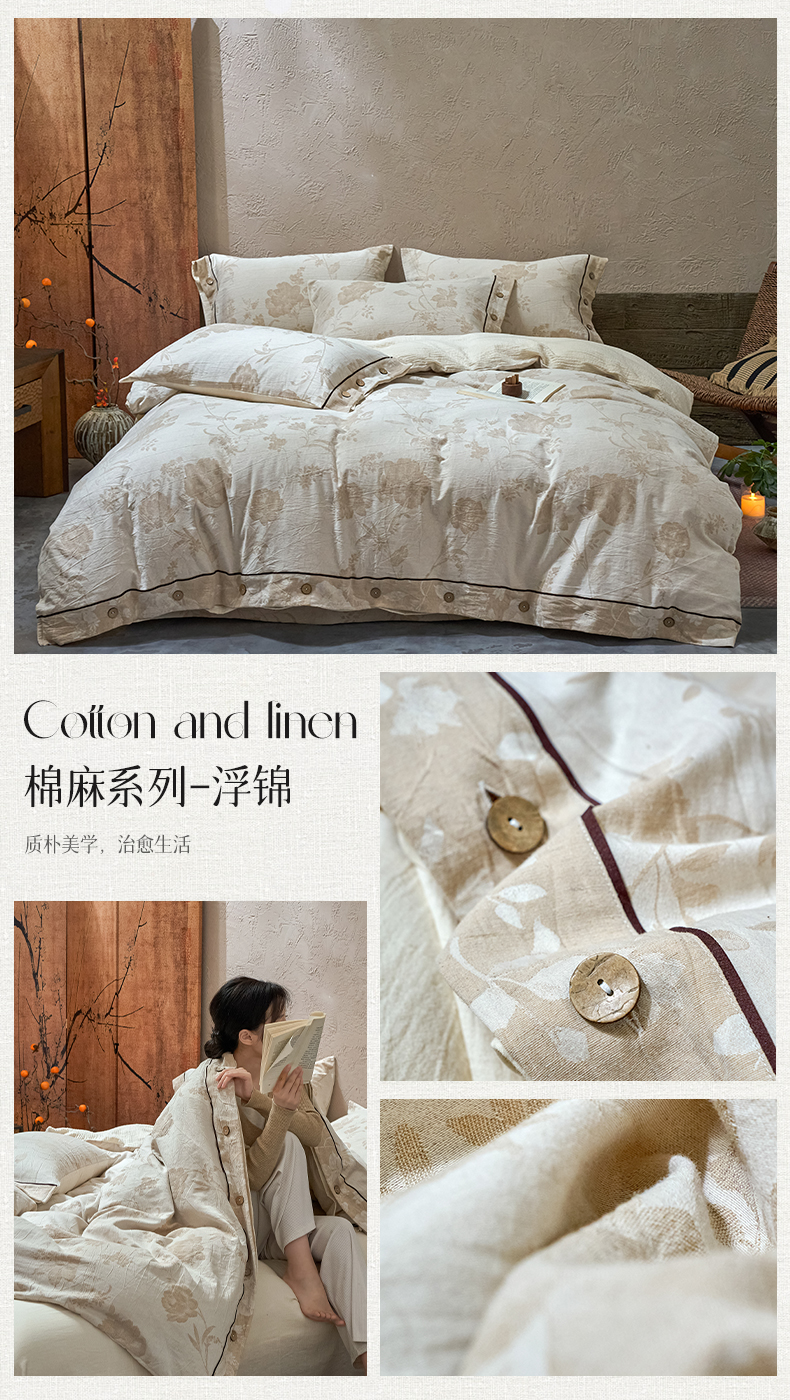 春皖家纺 2025新款棉麻大提花双层纱系列四件套-纽扣款 赫素